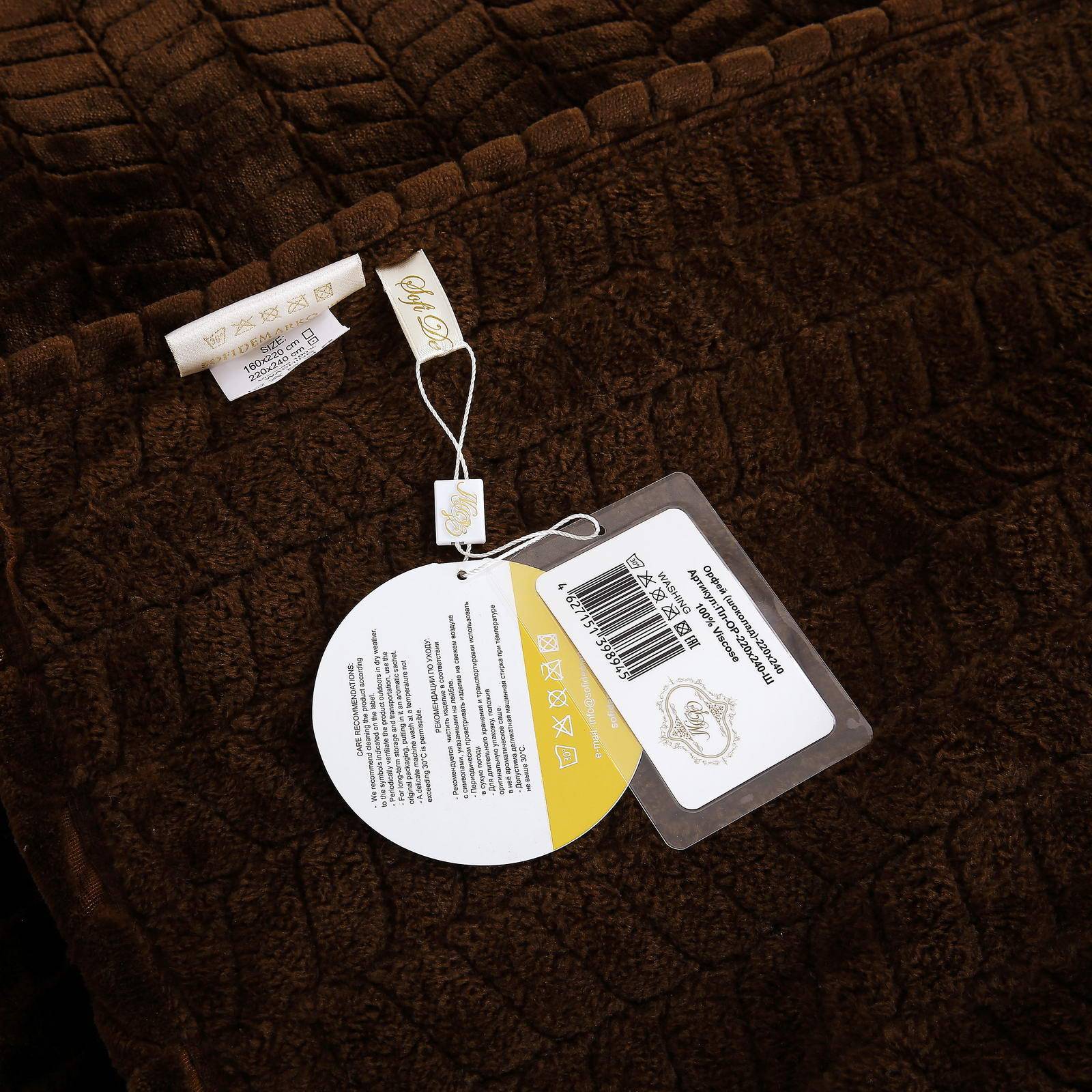 Плед велсофт с фактурным рисунком.Размер: 220х240;Состав: 100% Вискоза; Плотность: 350 гр\м2Упаковка: ПВС.