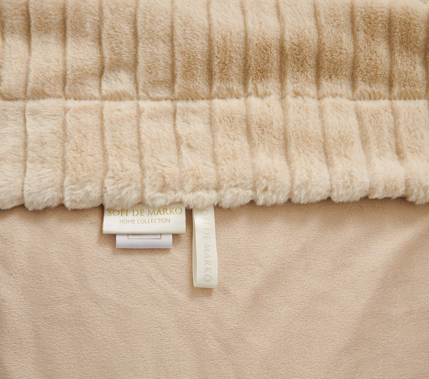 Меховой пледРазмер: 160х220Состав: 100% вискозаОсобенности: на лицевой стороне рельефный рисунокПлотность: 500 гр.кв.мУпаковка: сумка ПВХУход: стирка 30гр.