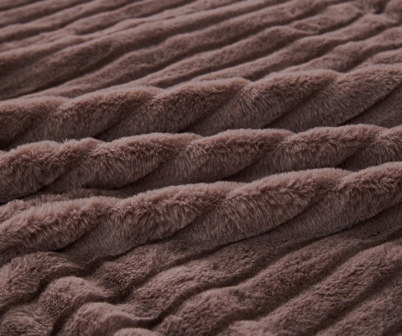 Меховой пледРазмер: 160х220Состав: 100% вискозаОсобенности: на лицевой стороне рельефный рисунокПлотность: 500 гр.кв.мУпаковка: сумка ПВХУход: стирка 30гр.