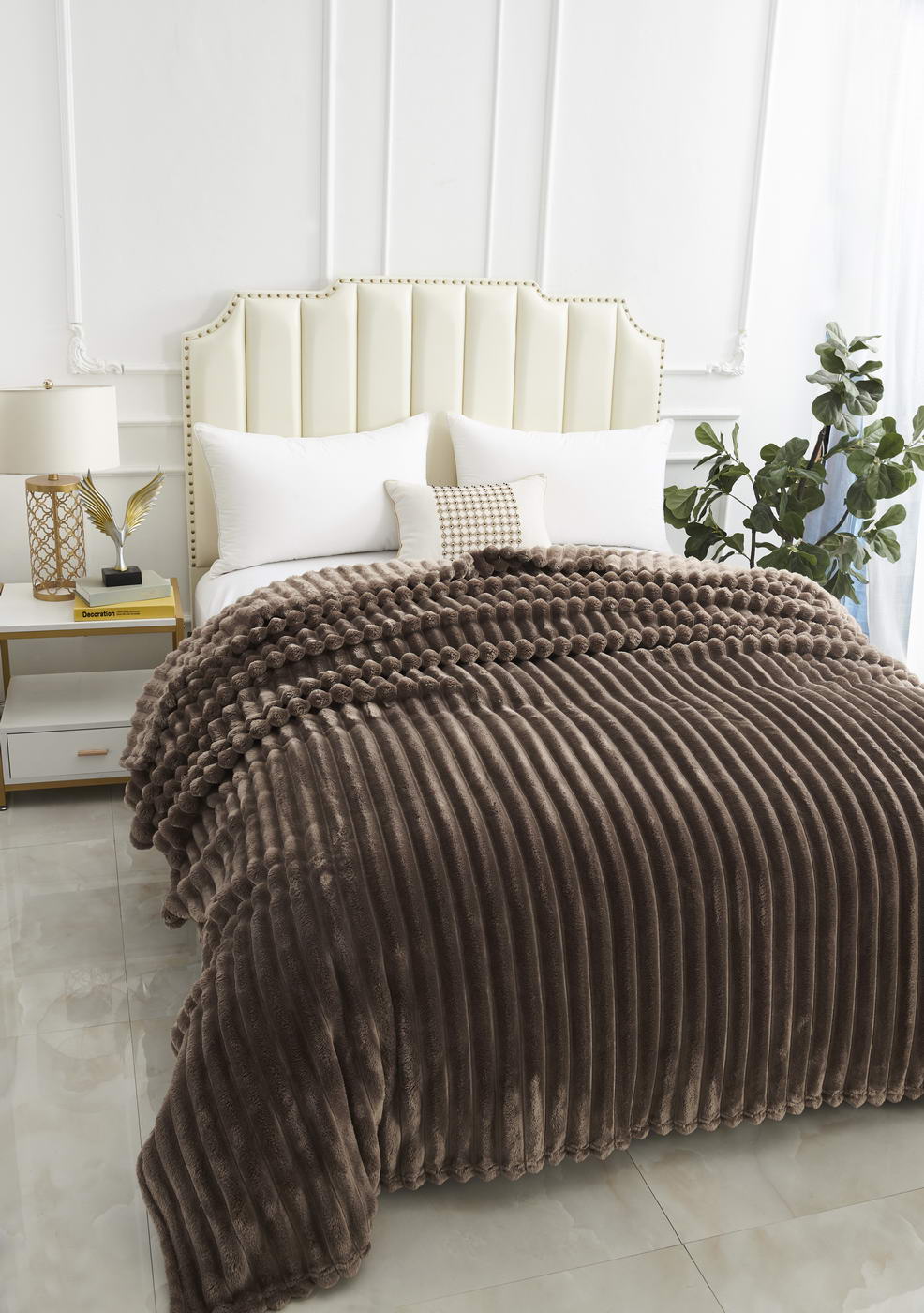 ПледРазмер: 160х210.Состав: 100% вискоза; Особенности: на лицевой стороне рельефная полосаУпаковка: сумка ПВХ