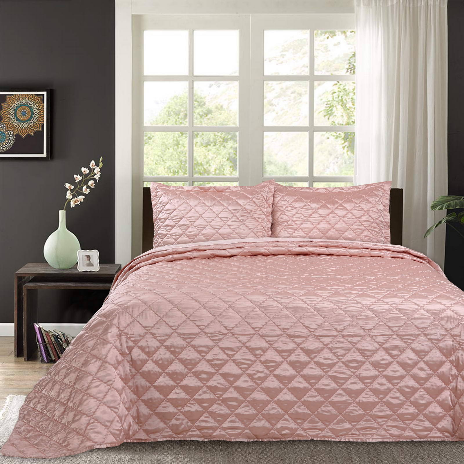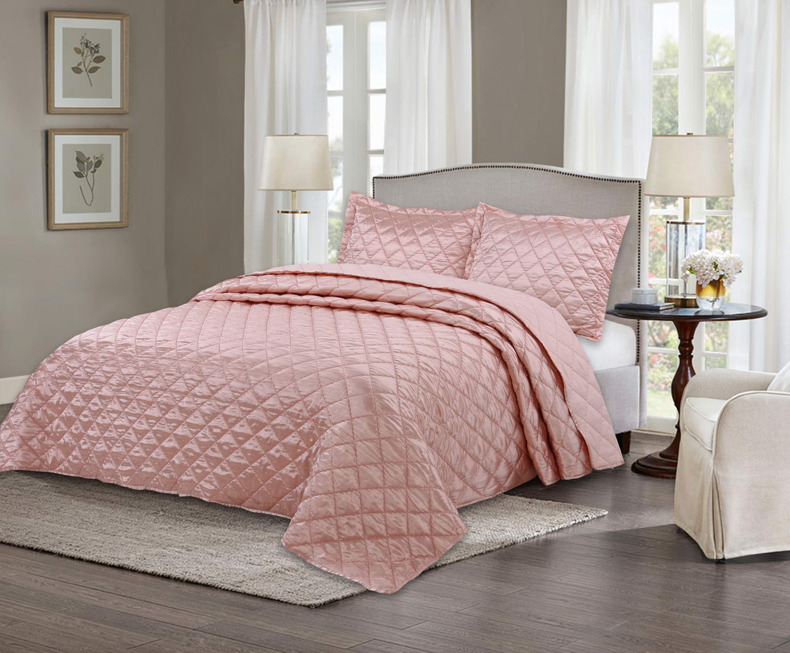 Покрывала СтеганноеКомплектация:Покрывало: 240х260Наволочки: 50х70 (2шт)Ткань: атлас Состав: 70% Вискоза 30% ХлопкаУпаковка: текстильная сумкаУход. Стирка 30'