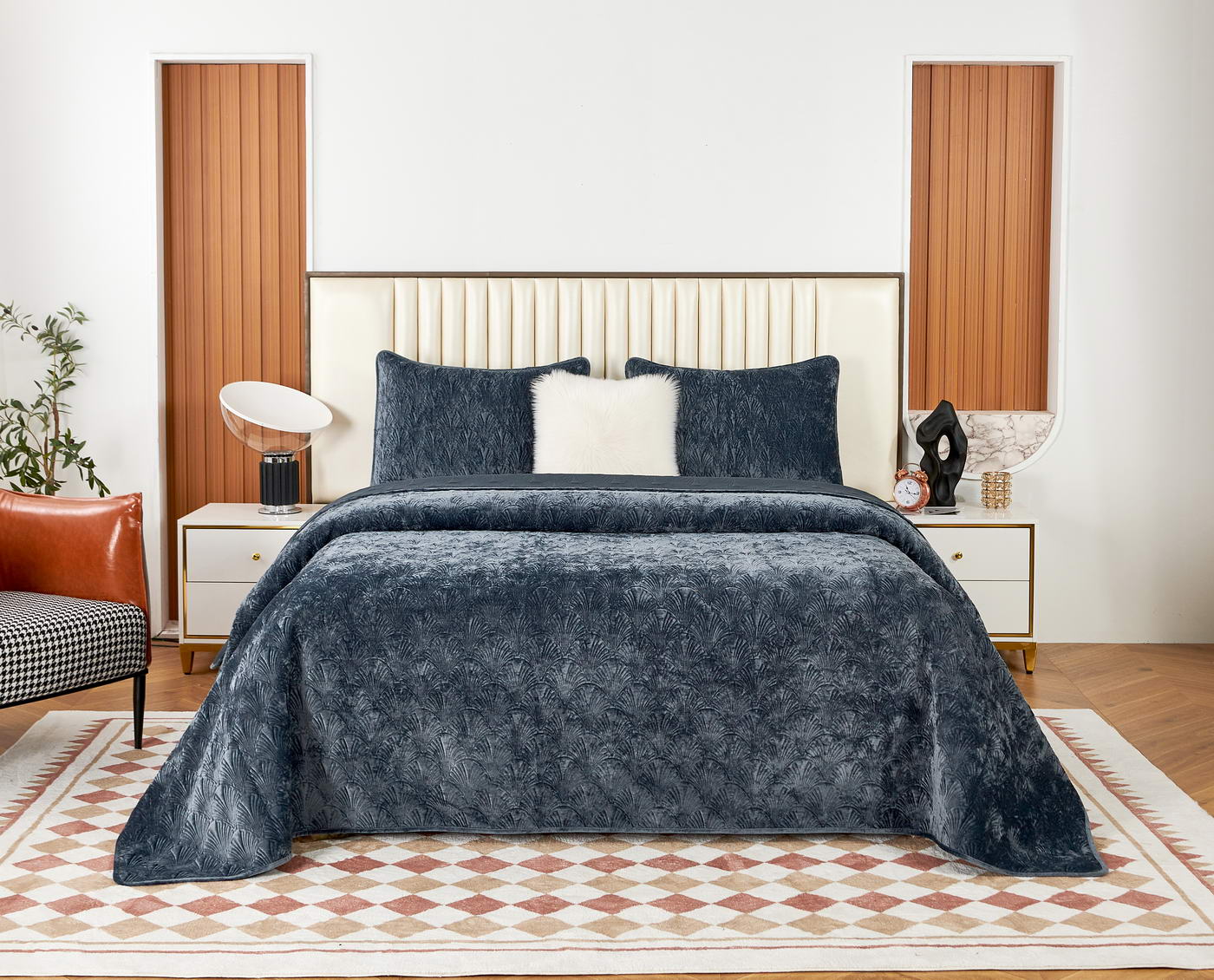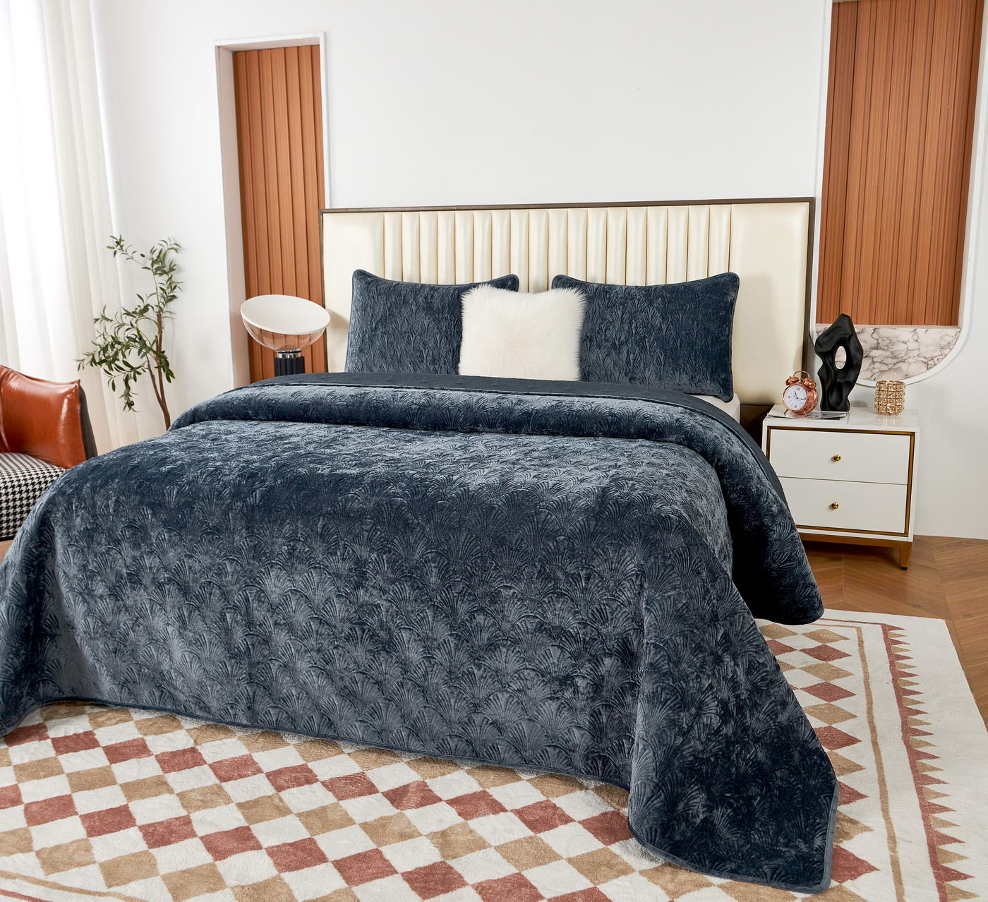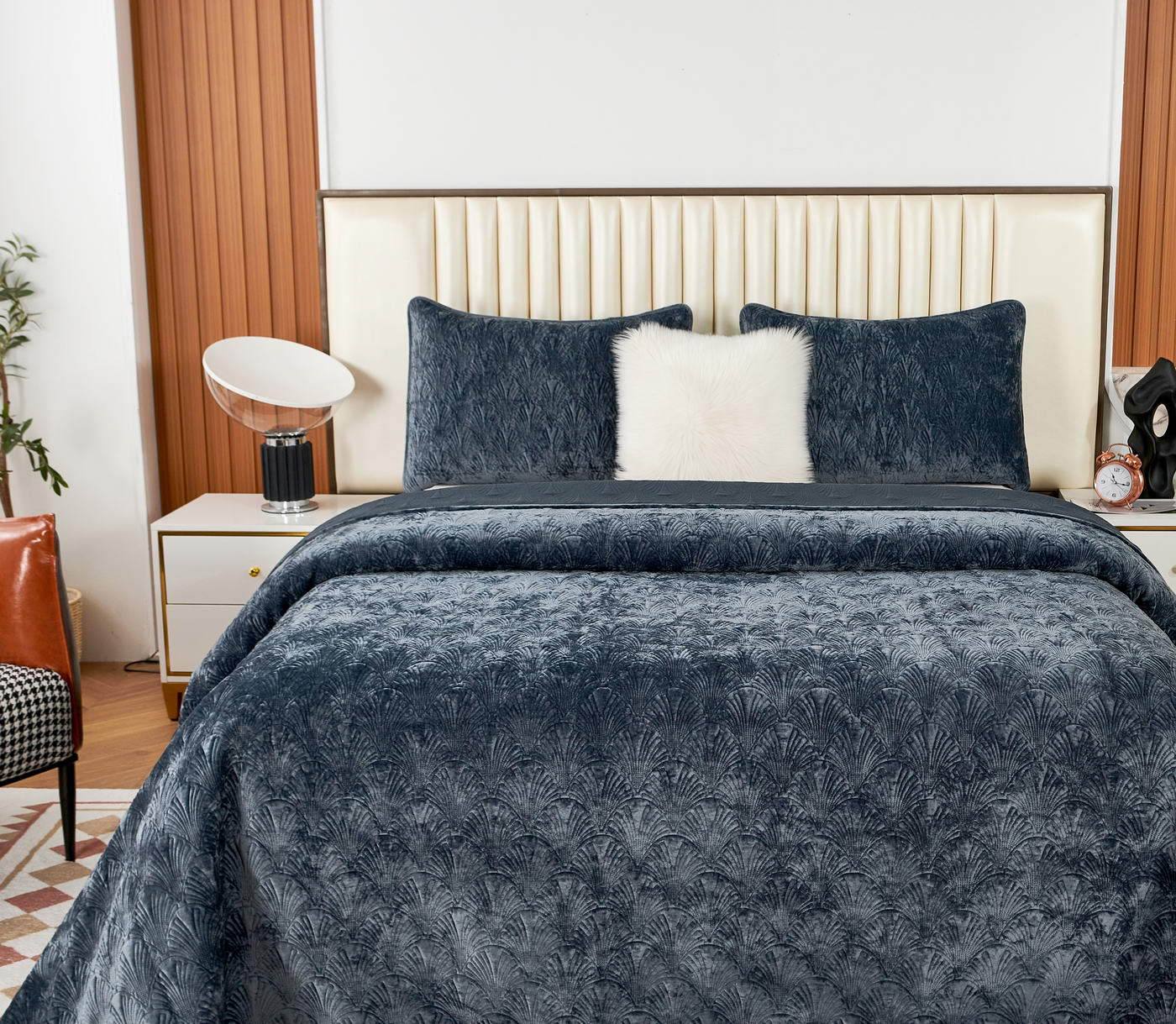 ПокрывалоКомплектация:Покрывало: 240х260Наволочки: 50х70 (2шт)Ткань: бархатОсобенность: термостежка Состав: 100% ВискозаУпаковка: текстильная сумкаУход. Стирка 30'