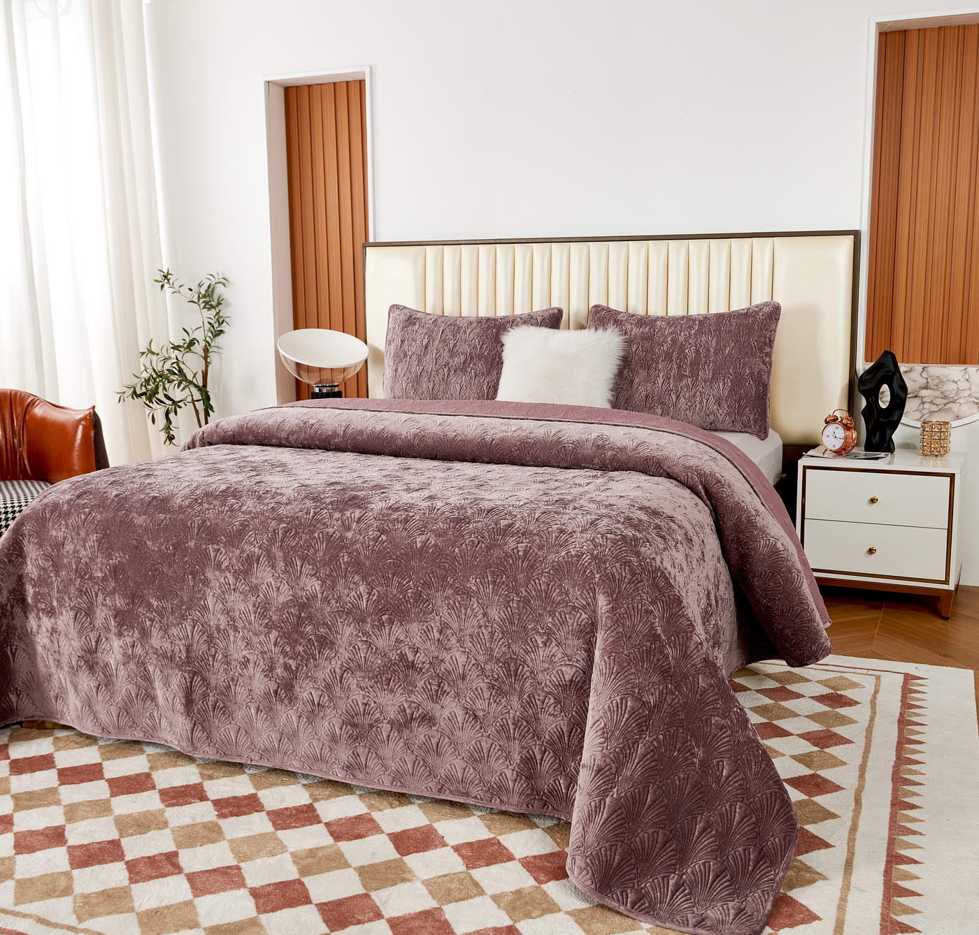 ПокрывалоКомплектация:Покрывало: 240х260Наволочки: 50х70 (2шт)Ткань: бархатОсобенность: термостежка Состав: 100% ВискозаУпаковка: текстильная сумкаУход. Стирка 30'