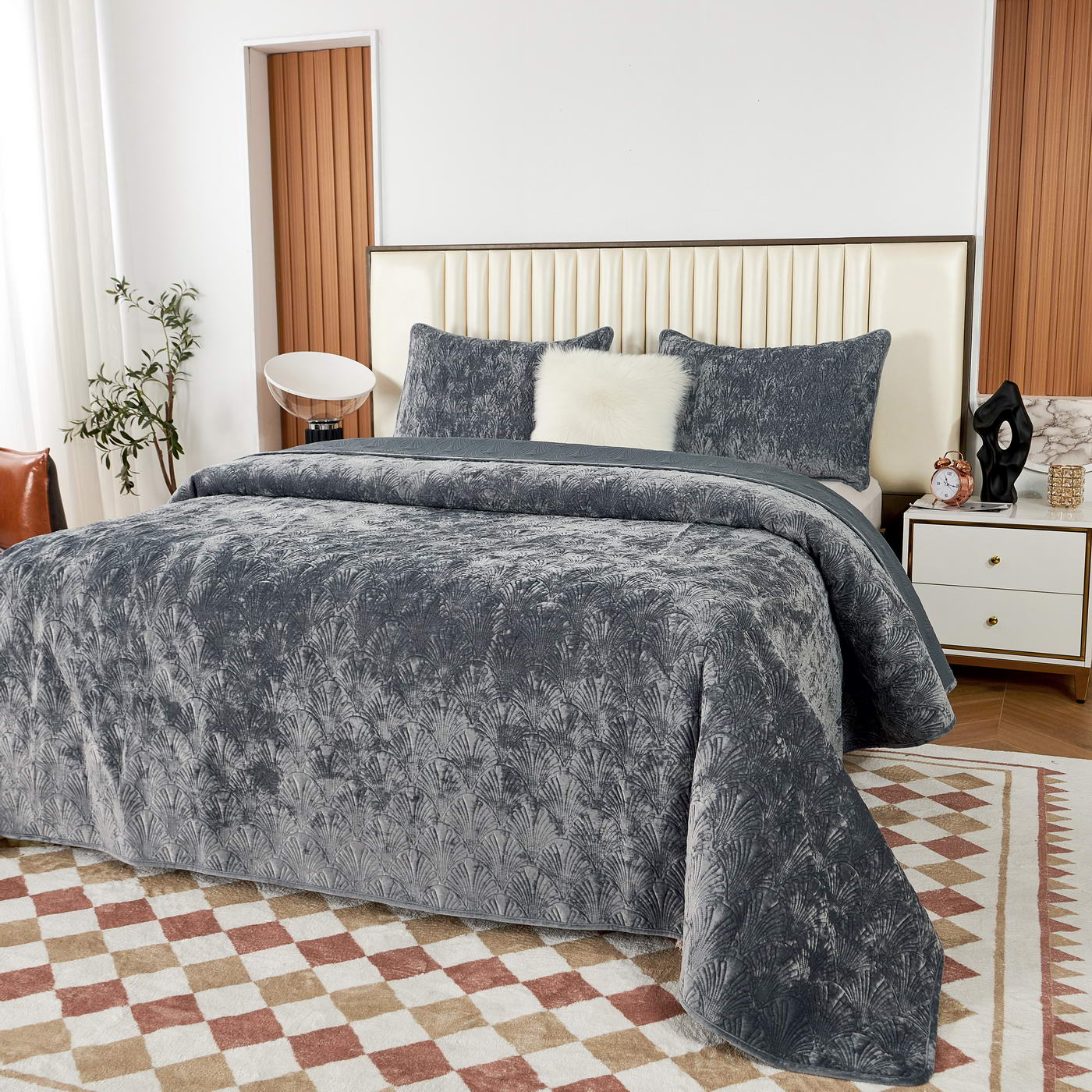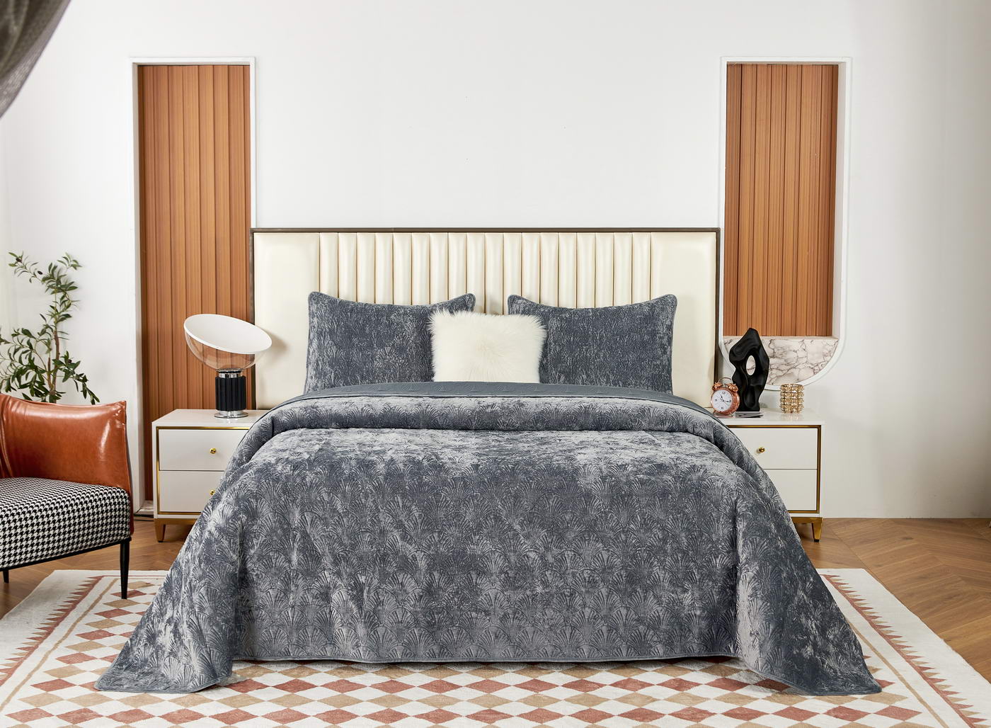 ПокрывалоКомплектация:Покрывало: 240х260Наволочки: 50х70 (2шт)Ткань: бархатОсобенность: термостежка Состав: 100% ВискозаУпаковка: текстильная сумкаУход. Стирка 30'