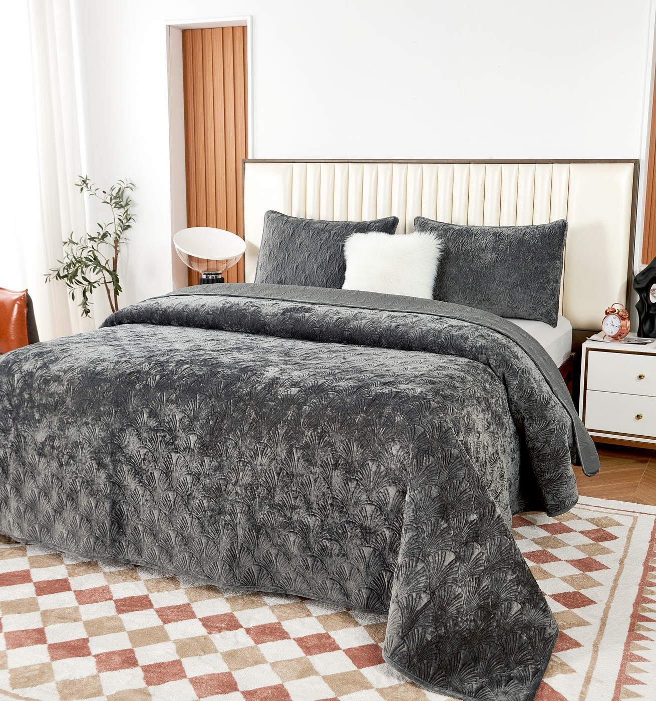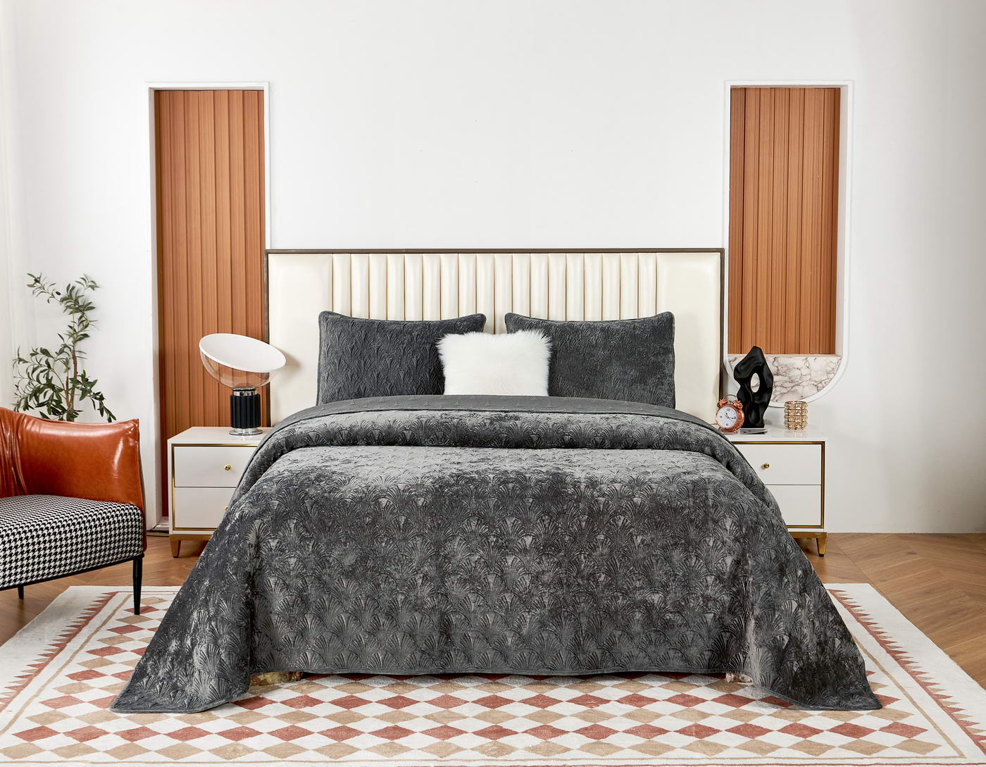 ПокрывалоКомплектация:Покрывало: 240х260Наволочки: 50х70 (2шт)Ткань: бархатОсобенность: термостежка Состав: 100% ВискозаУпаковка: текстильная сумкаУход. Стирка 30'