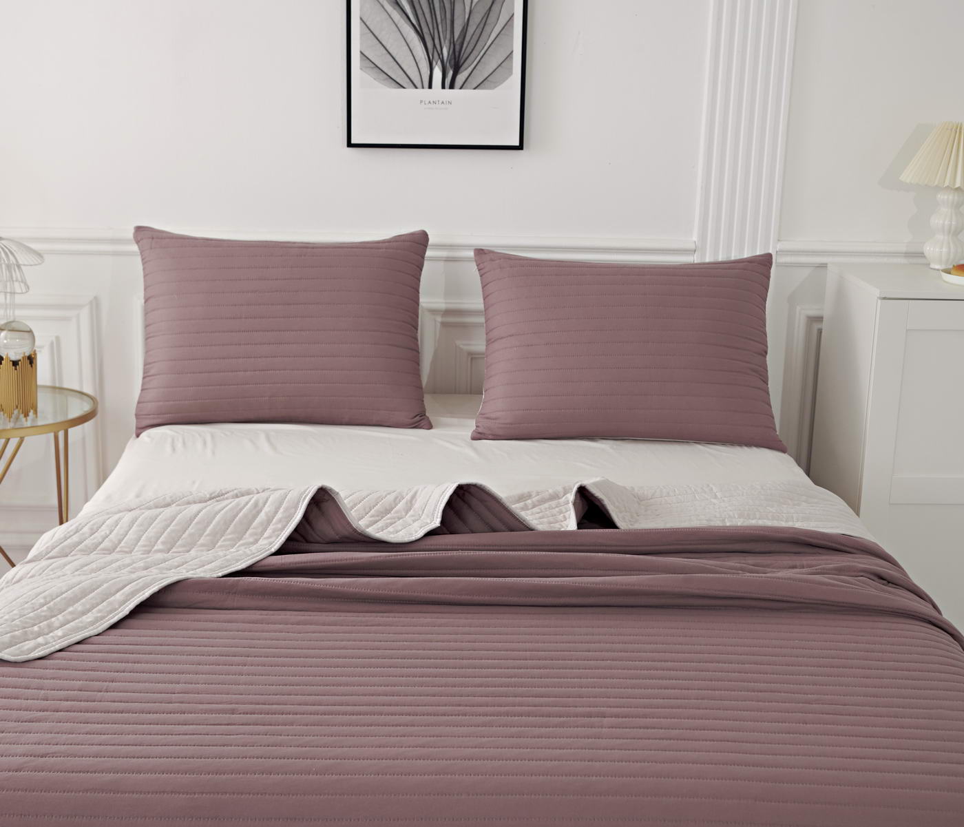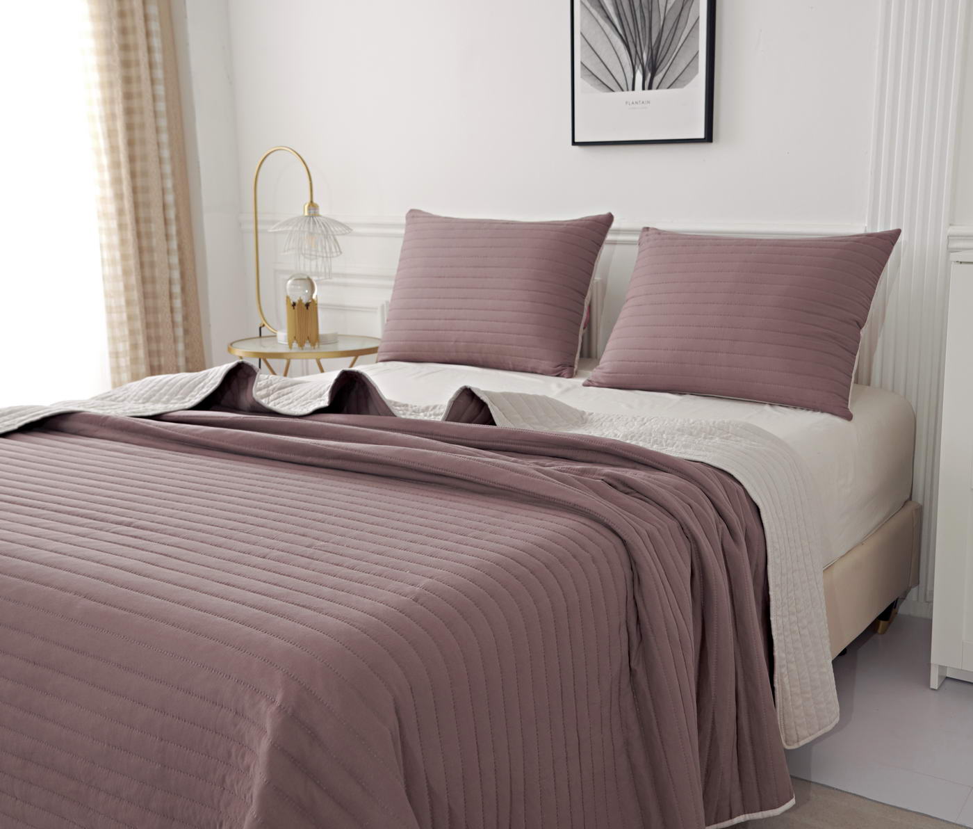 Покрывало с термостежкойКомплектация:Покрывало: 230х250смНаволочка: 50х70см (2)Особенность: ДвустороннееЦвет: св беж\моккоПлотность: 85/150/85Состав: 70% Вискоза 30% ХлопокУпаковка: сумка ПВХУход. Стирка 30'