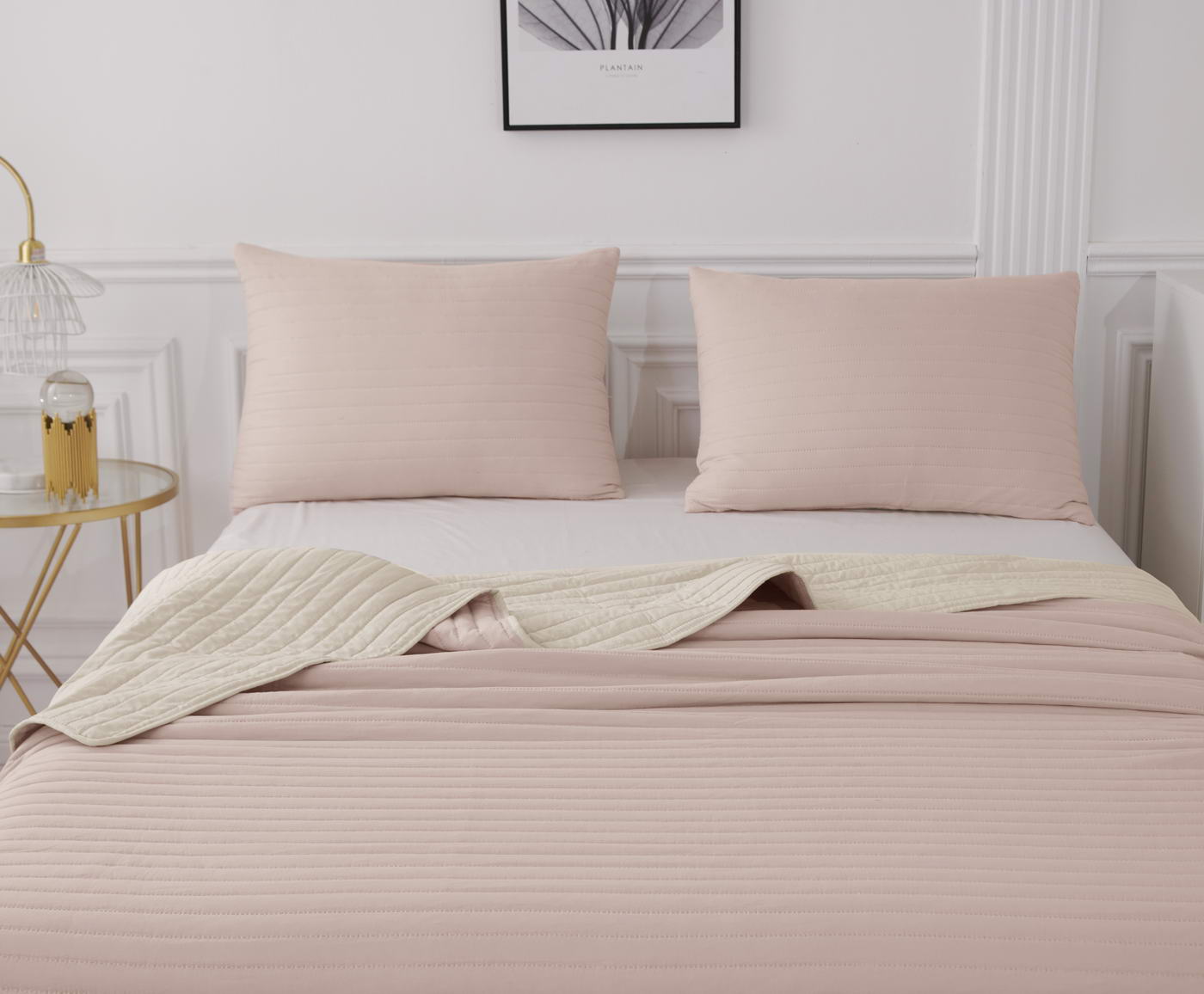 Покрывало с термостежкойКомплектация:Покрывало: 160х220смНаволочка: 50х70см (1)Особенность: ДвустороннееЦвет: беж\пудраПлотность: 85/150/85Состав: 70% Вискоза 30% ХлопокУпаковка: сумка ПВХУход. Стирка 30'