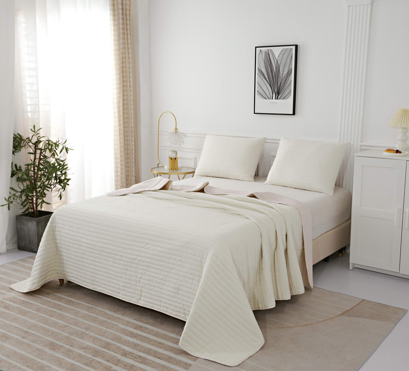 Покрывало с термостежкойКомплектация:Покрывало: 230х250смНаволочка: 50х70см (2)Особенность: ДвустороннееЦвет: персик\молокоПлотность: 85/150/85Состав: 70% Вискоза 30% ХлопокУпаковка: сумка ПВХУход. Стирка 30'