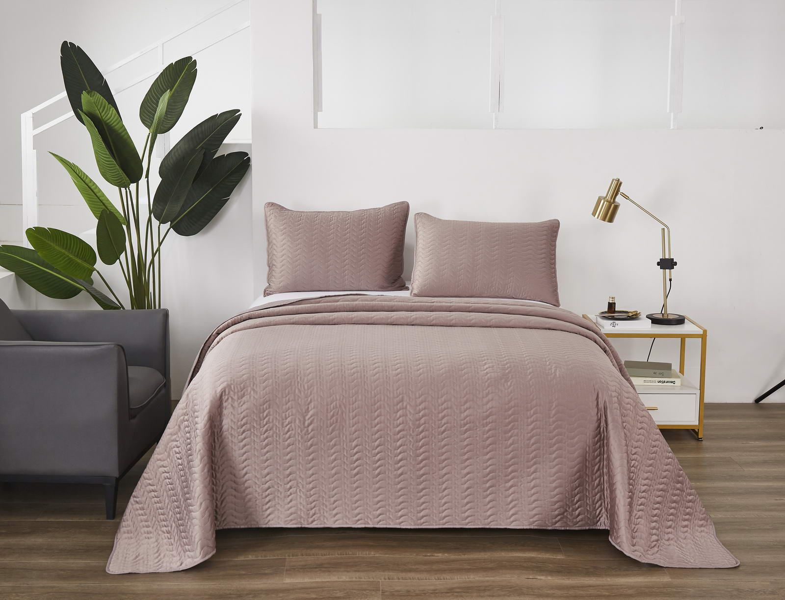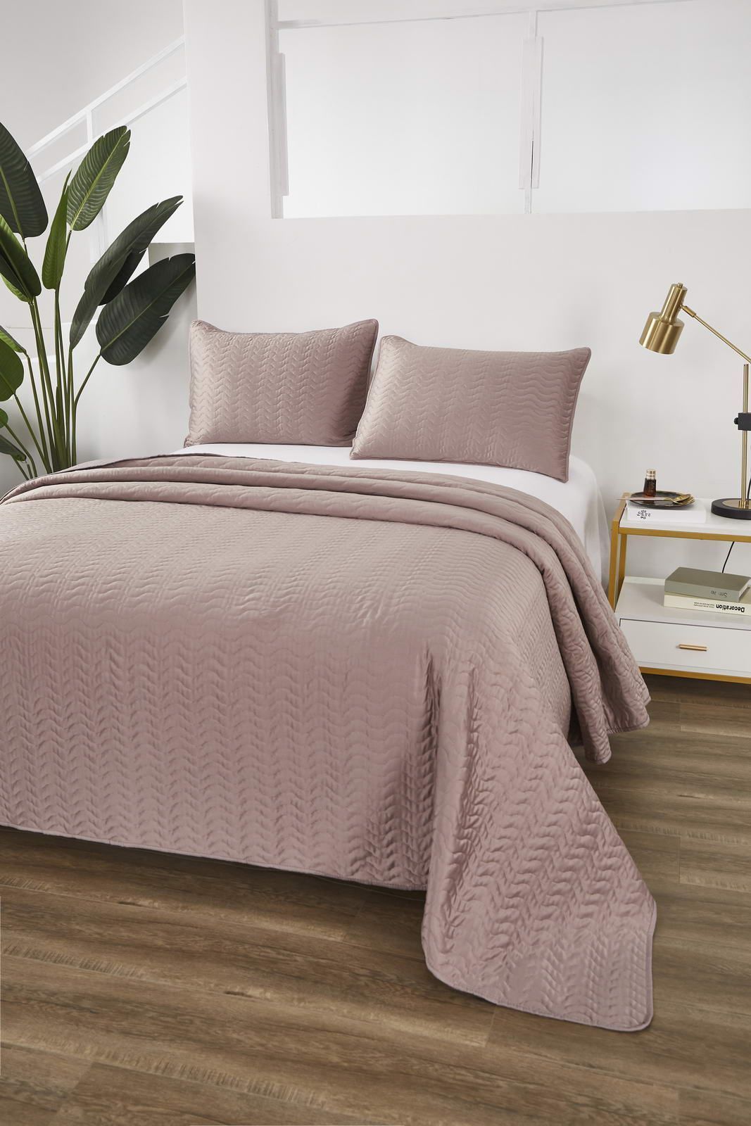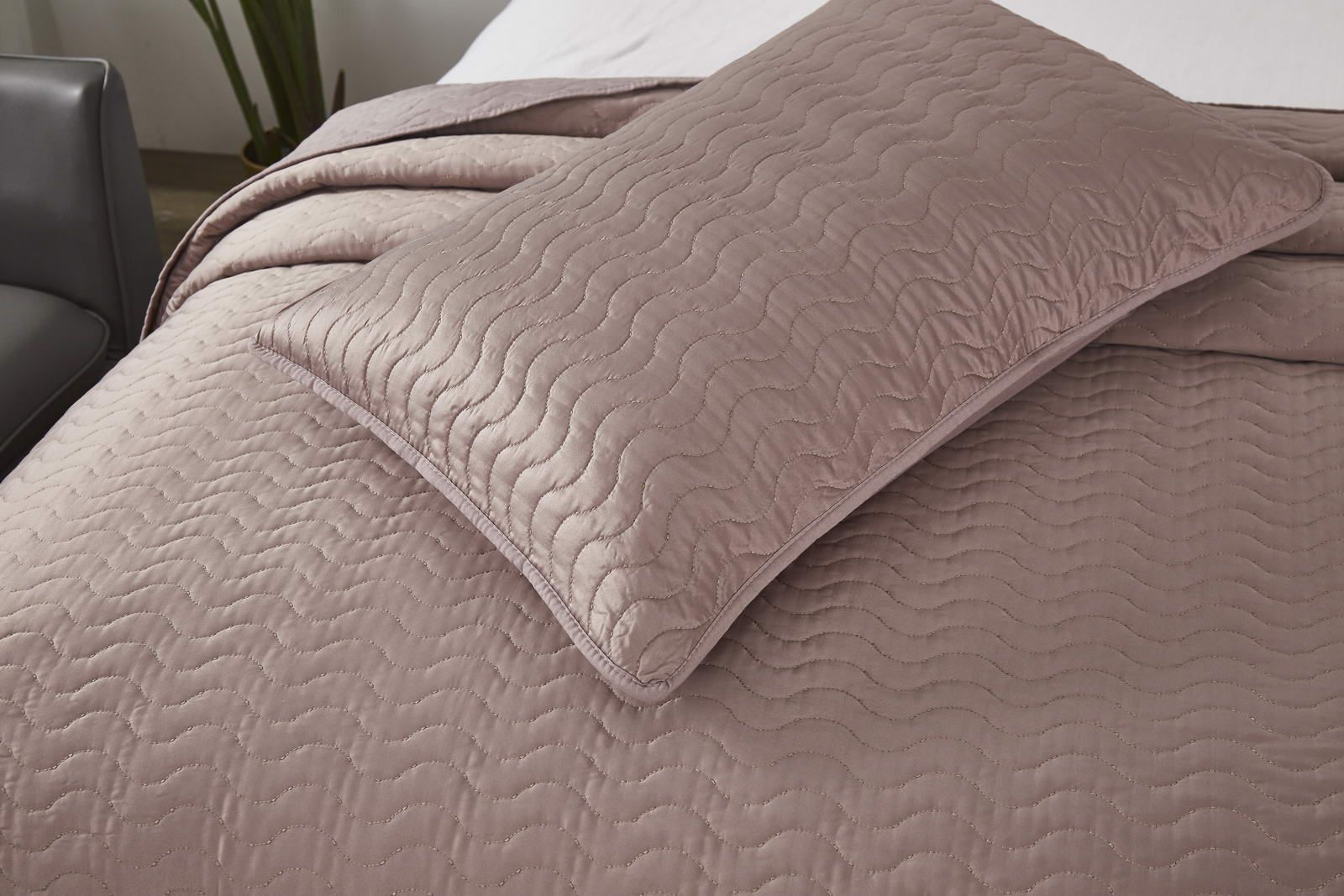 Покрывало стеганноеСостав: 30% хлопок, 70% вискоза; Комплектация:Покрывало: 160х220 (1);Наволочки: 50х70 (1); Упаковка: текстильная сумкаУход : Стирка 30с°, щадящая сушка.