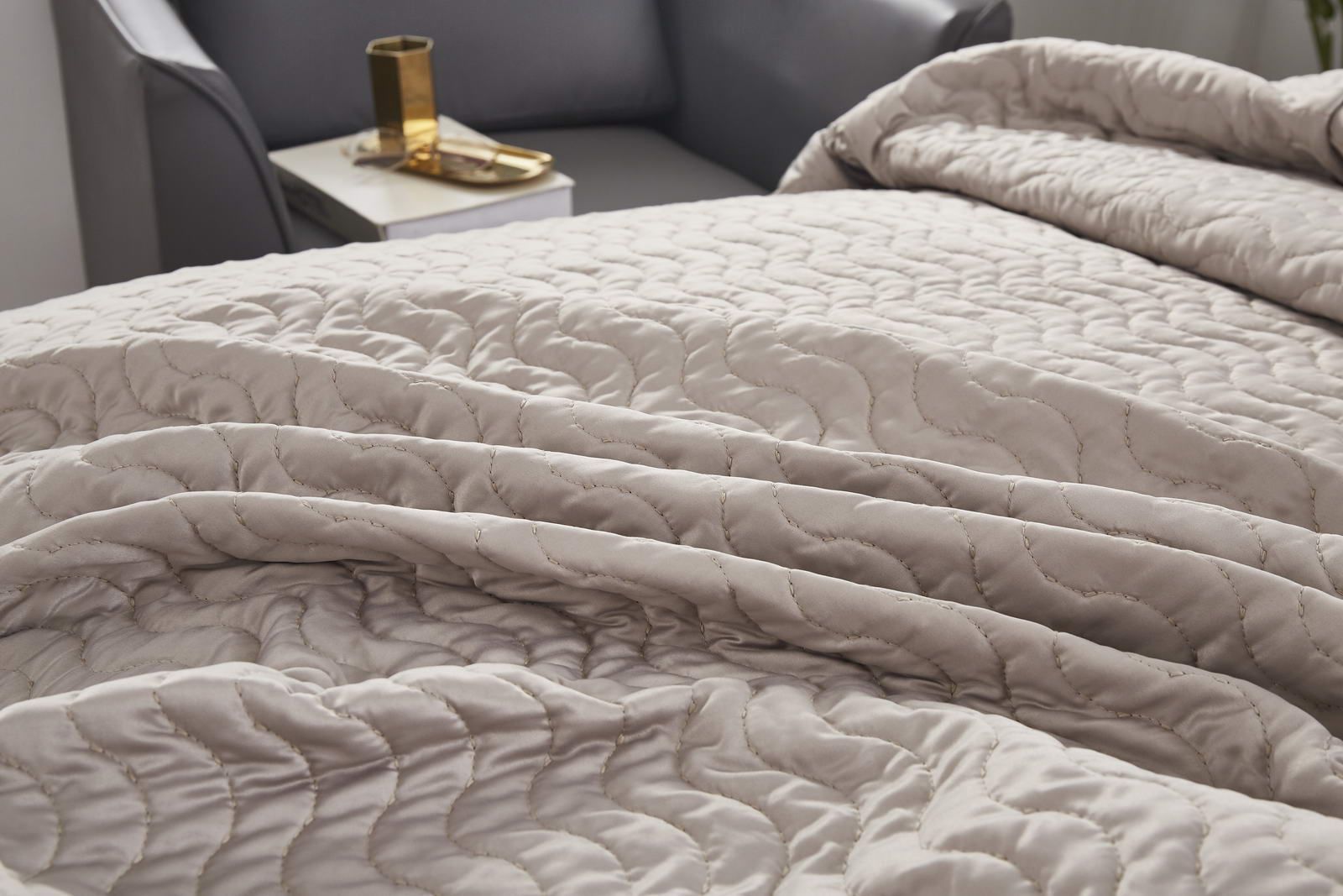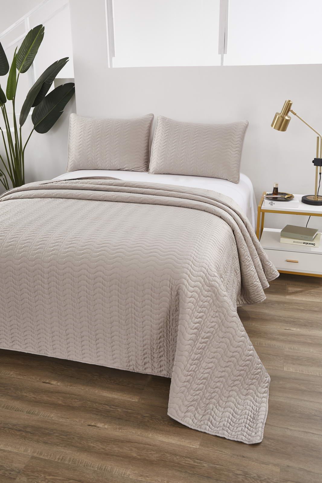 Покрывало стеганноеСостав: 30% хлопок, 70% вискоза; Комплектация:Покрывало: 230х250 (1);Наволочки: 50х70 (2); Упаковка: текстильная сумкаУход : Стирка 30с°, щадящая сушка.