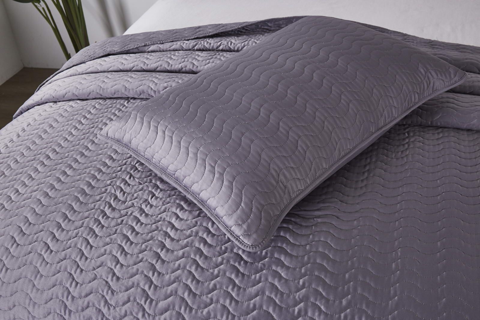 Покрывало стеганноеСостав: 30% хлопок, 70% вискоза; Комплектация:Покрывало: 160х220 (1);Наволочки: 50х70 (1); Упаковка: текстильная сумкаУход : Стирка 30с°, щадящая сушка.