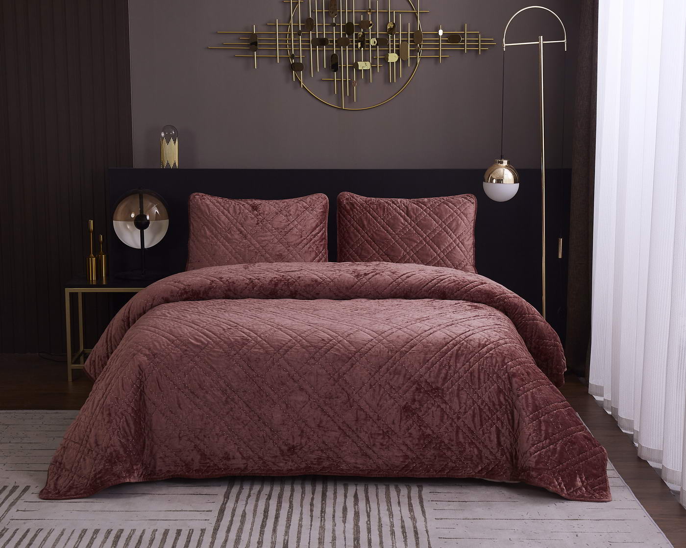 Покрывало Ткань: бархатСостав: 100% вискоза Размер: 160х22050х70 (1 шт)Плотность: 230/120/70Упаковка: текстильная сумка