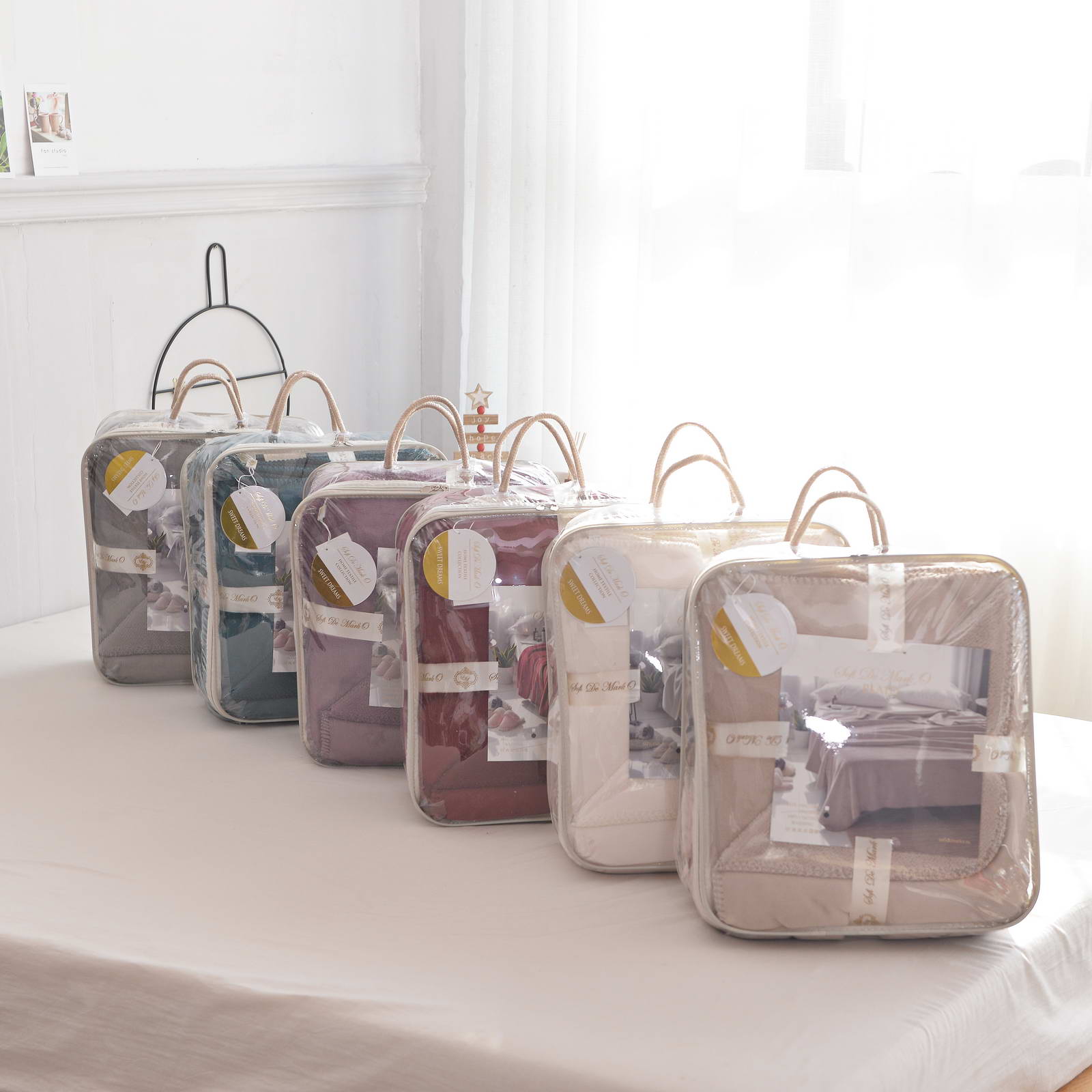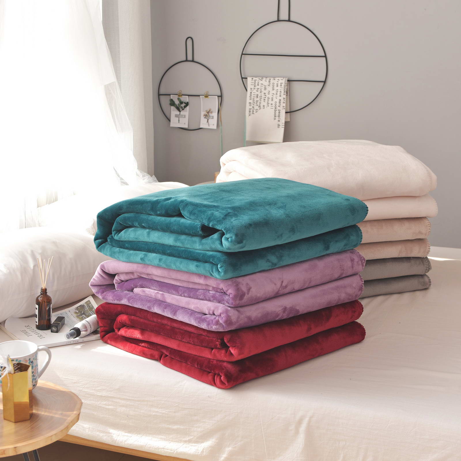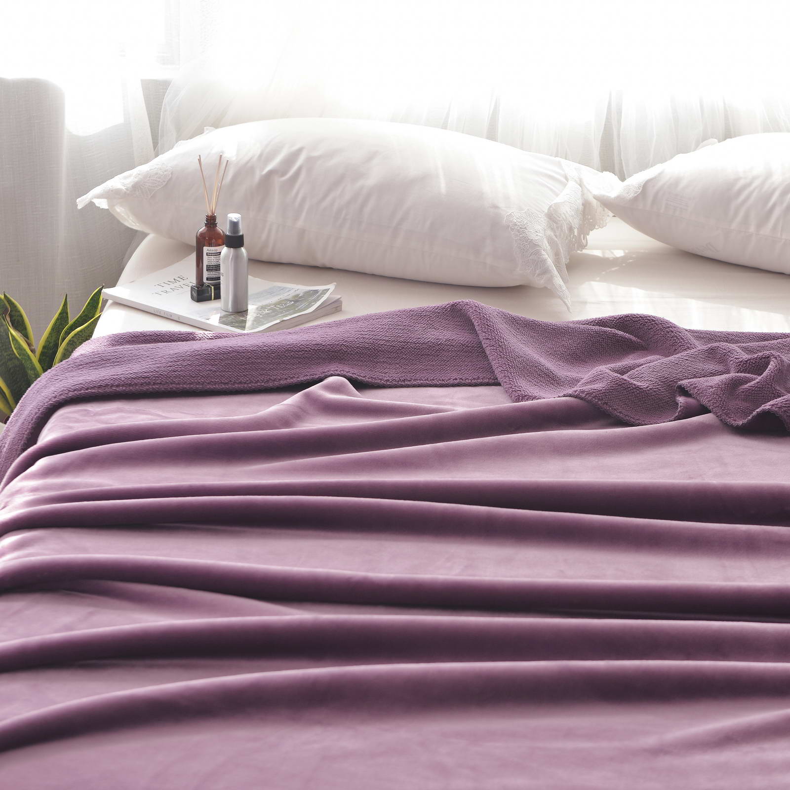 Плед двустороннийРазмер: 160х220см;Ткань: велсофт 500гр/м2Состав: 100% вискоза; Упаковка: сумка ПВХ с брендированной лентой