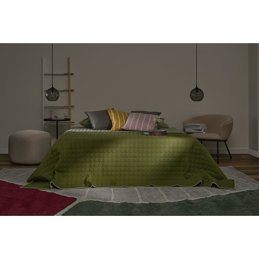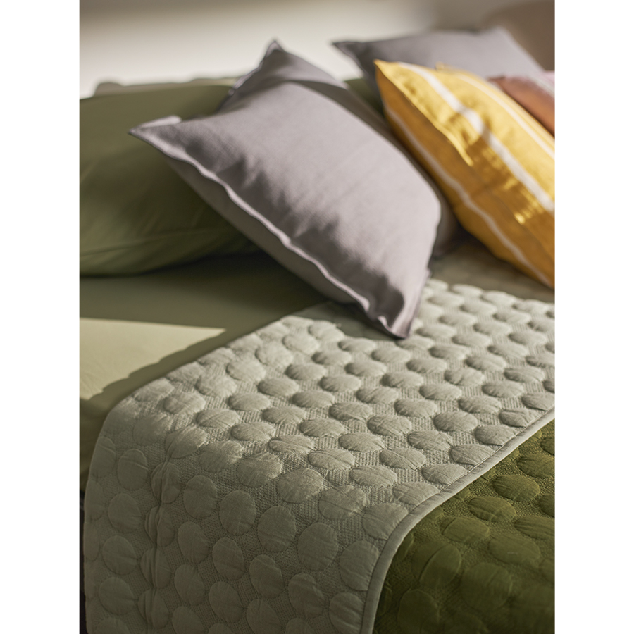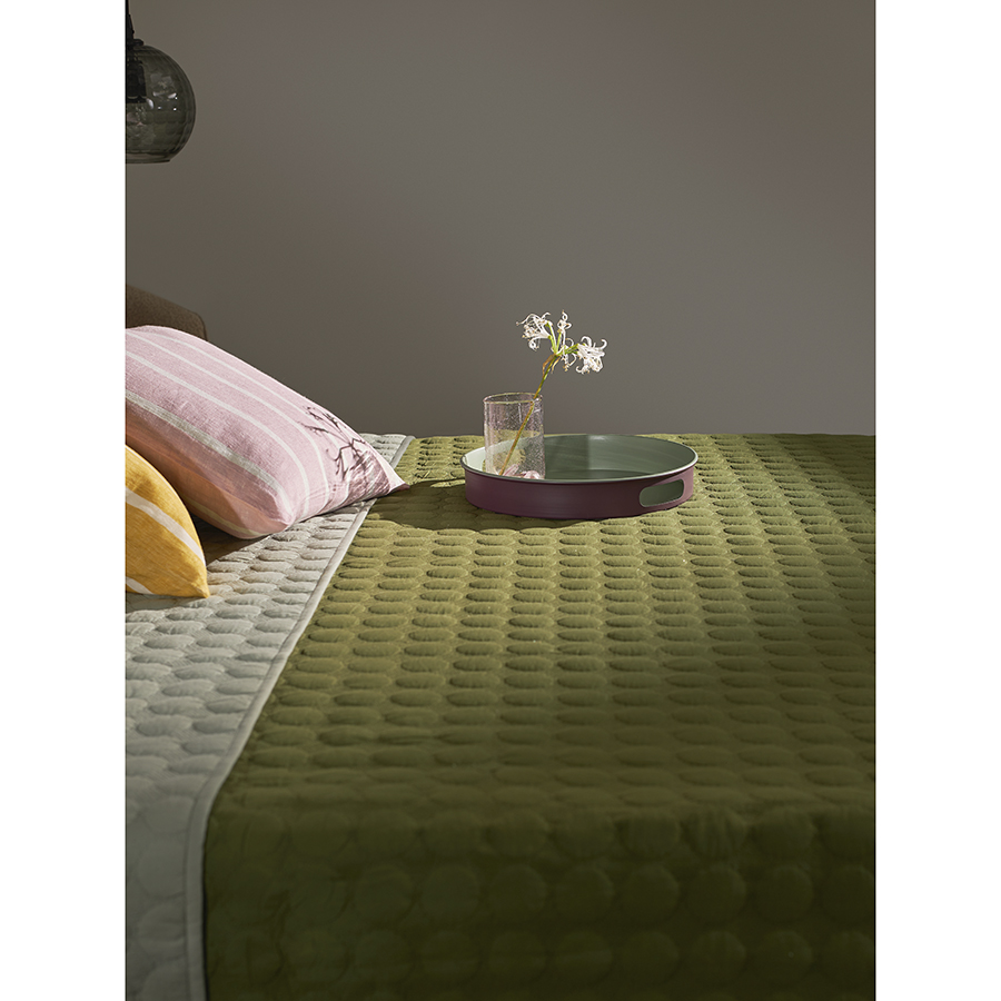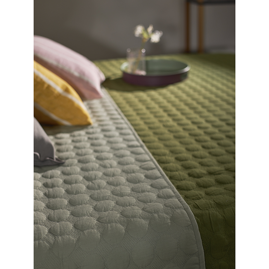 "Покрывало стеганое Solid dots оливкового цвета из коллекции Essential станет не только эффектным элементом декора вашей спальни, но и практичным решением для повседневного использования.