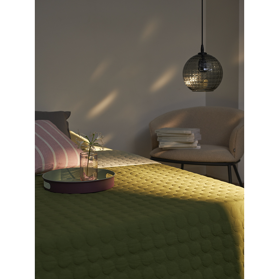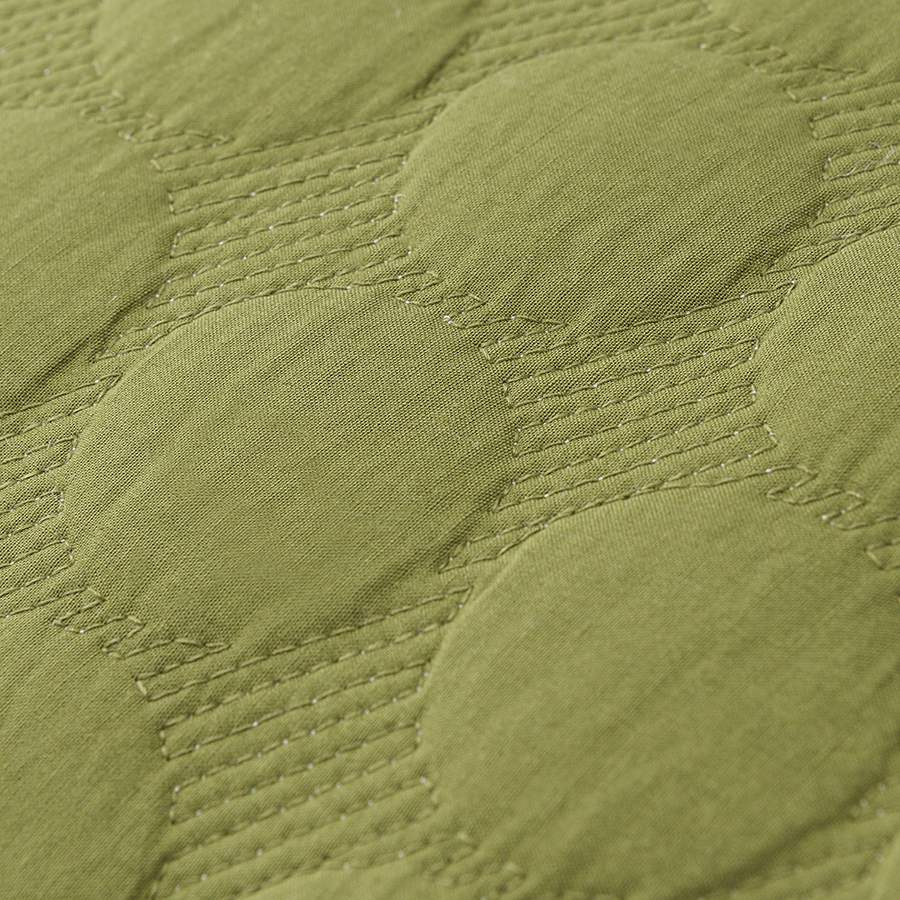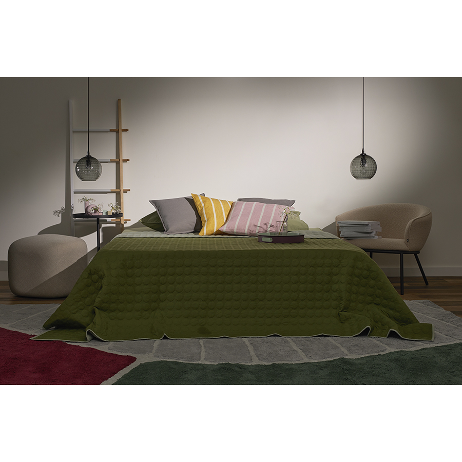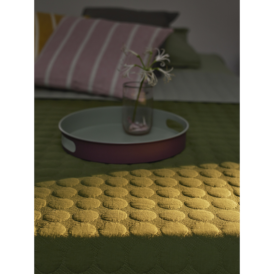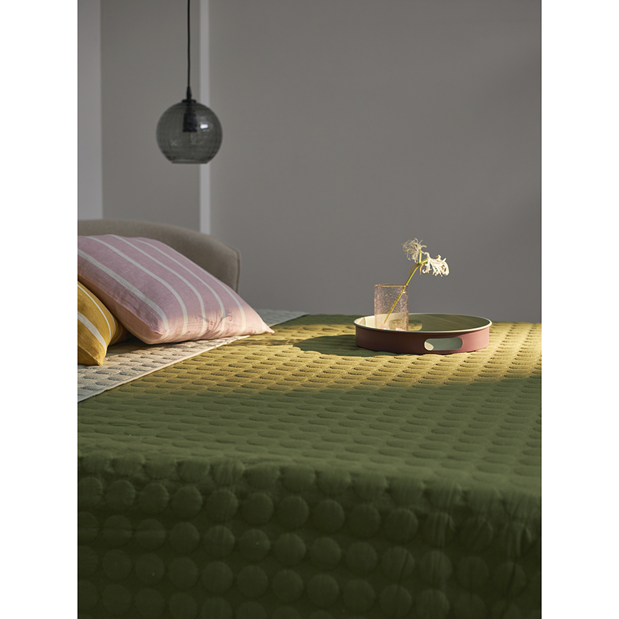 "Покрывало стеганое Solid dots оливкового цвета из коллекции Essential станет не только эффектным элементом декора вашей спальни, но и практичным решением для повседневного использования.