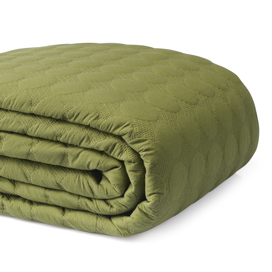 Покрывало стеганое Solid dots оливкового цвета из коллекции Essential, 230х250 см, Tkano