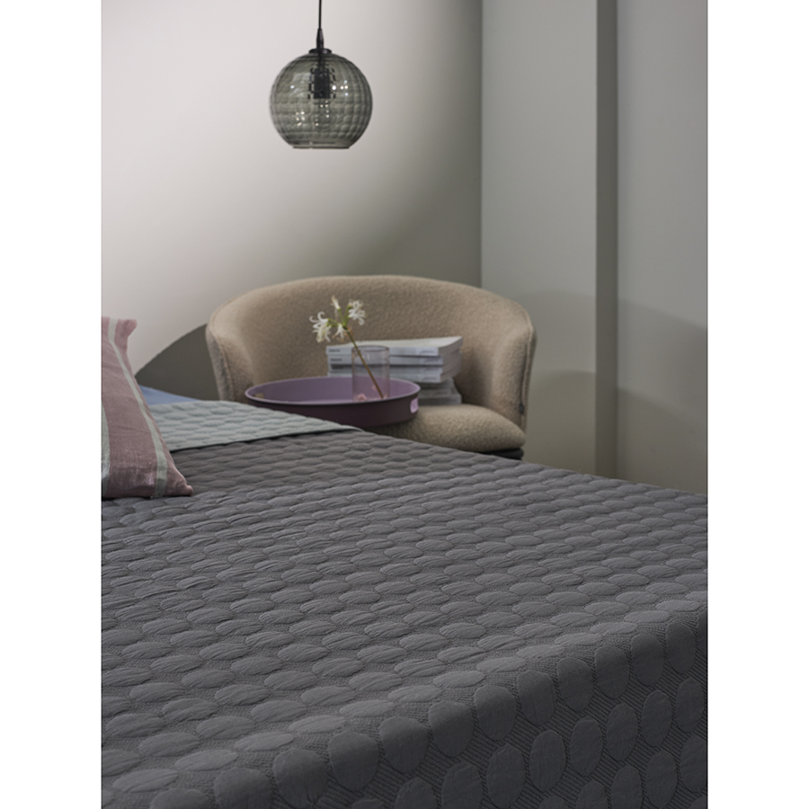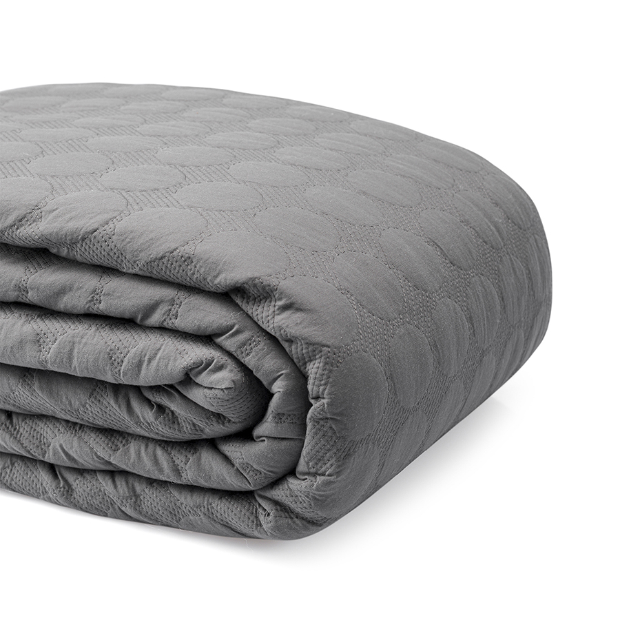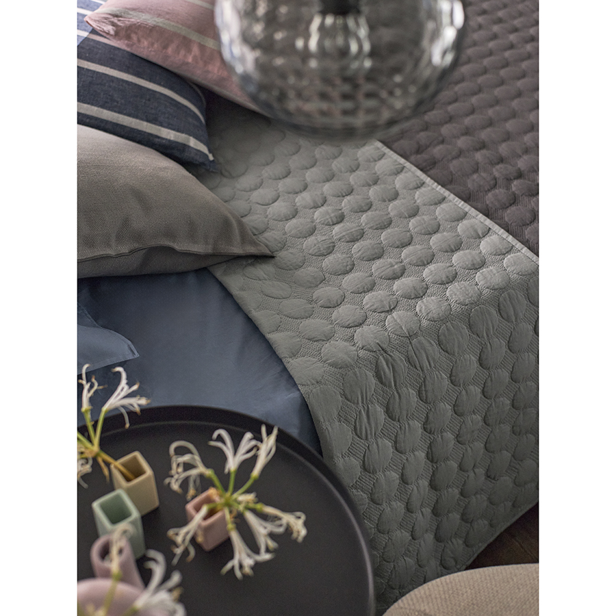 "Покрывало стеганое Solid dots серого цвета из коллекции Essential станет не только эффектным элементом декора вашей спальни, но и практичным решением для повседневного использования.