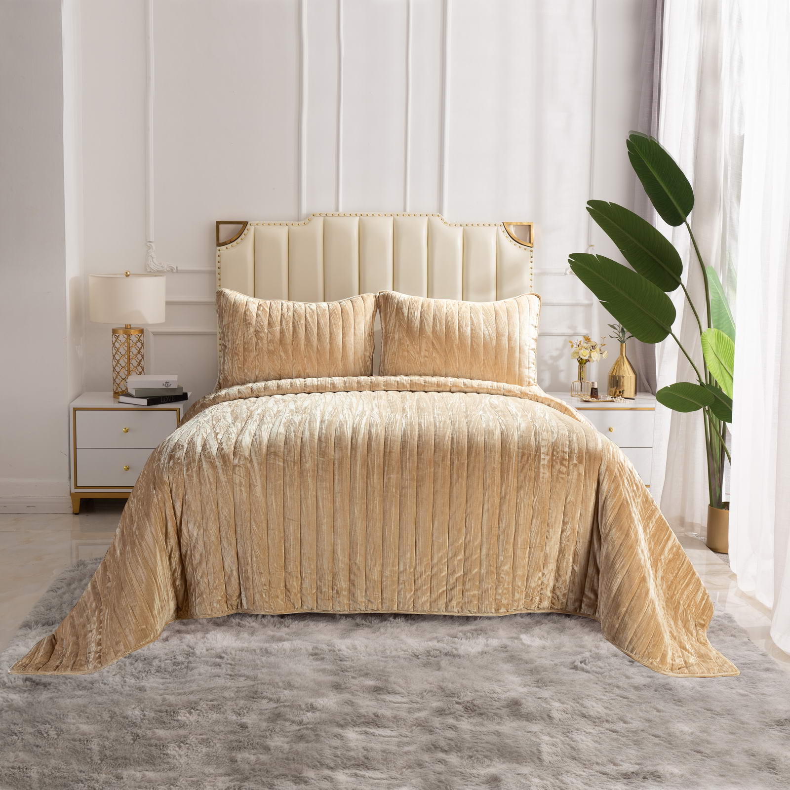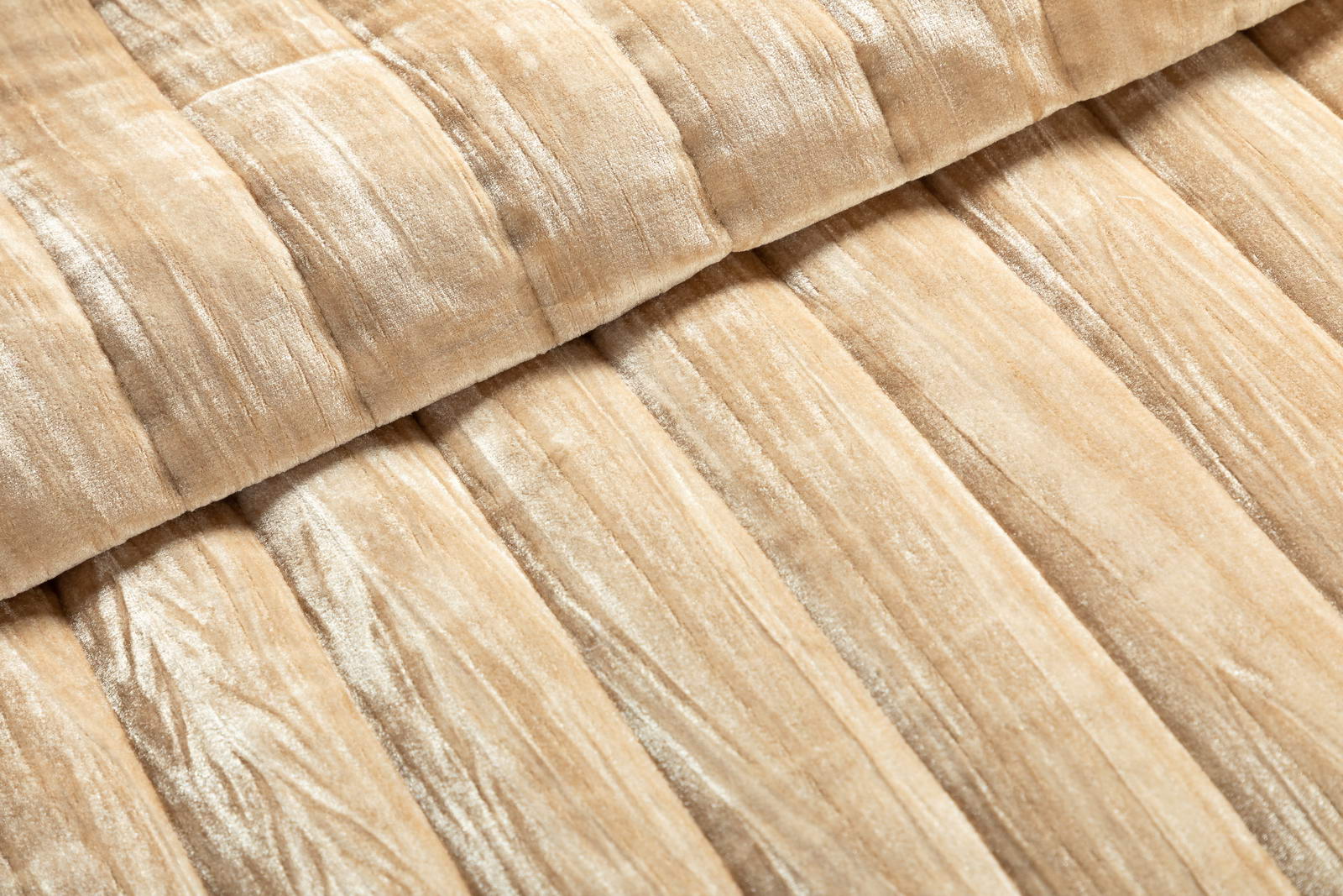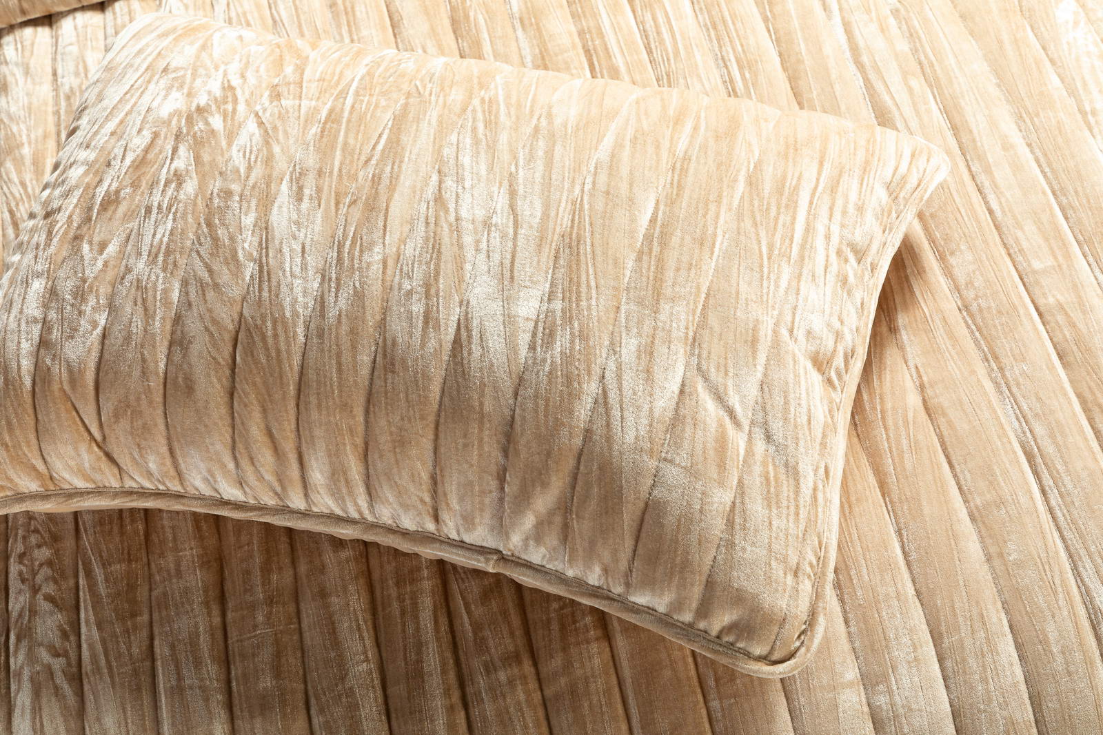 Покрывало Жатый бархатКомплектация:Покрывало: 240х260Наволочка: 50х70 (2шт)Плотность; 250/120/80Состав: 100% ВискозаУпаковка: текстильная сумкаУход. Стирка 30'