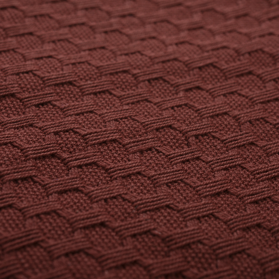 "Однотонное покрывало представлено в насыщенном бордовом оттенке. Изделие выполнено из длинноволокнистого хлопка, который отличается особой износостойкостью и прочностью. Приятный на ощупь вафельный текстиль хорошо пропускает воздух, не вызывает аллергию, и на нем не образуются катышки. Изделие упаковано в брендированную крафтовую коробку.