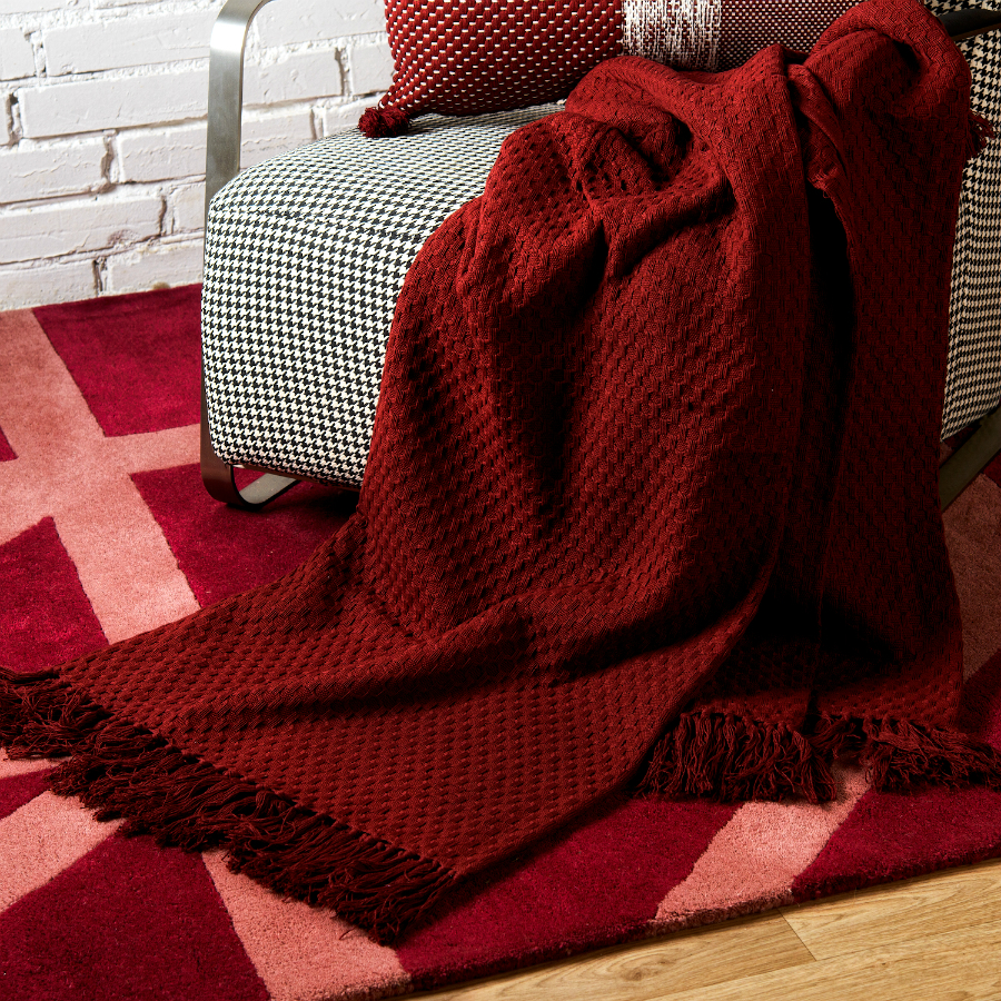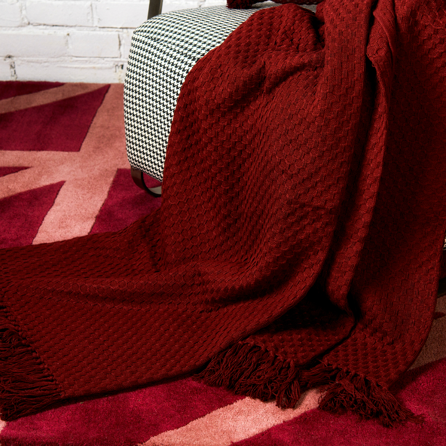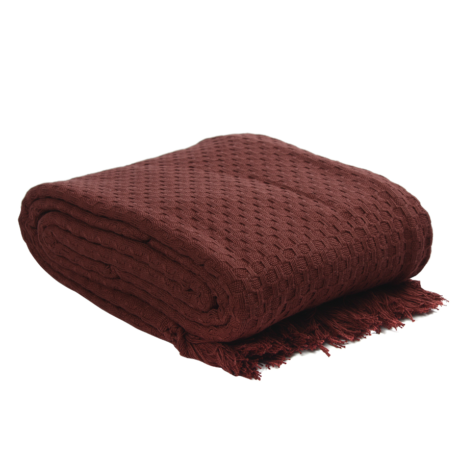 Покрывало вафельное бордового цвета из коллекции Essential, 180х250 см