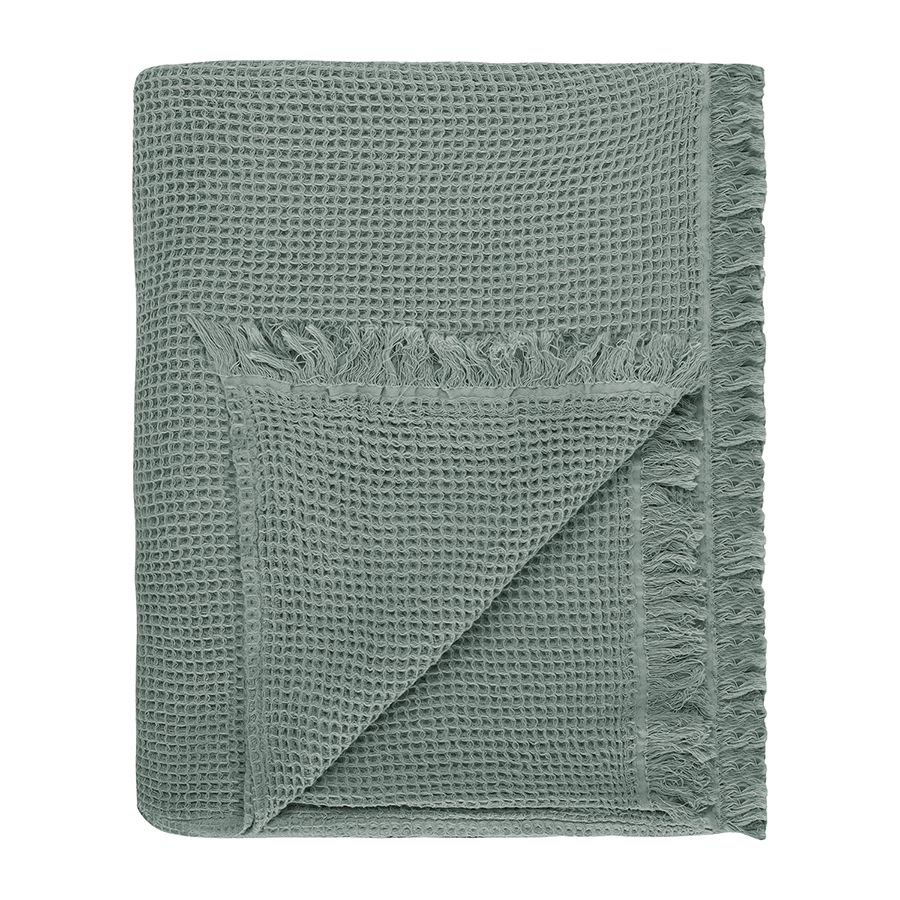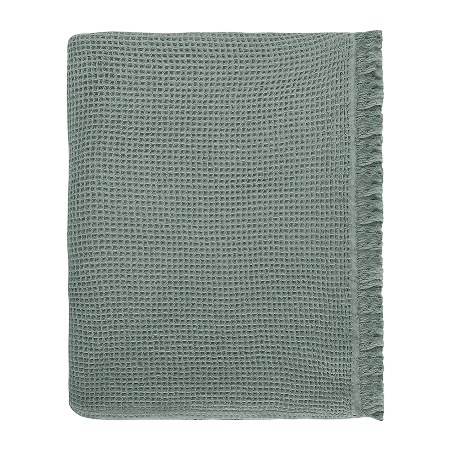 Покрывало вафельное из хлопка цвета шалфея из коллекции Essential, 230х250 см, Tkano