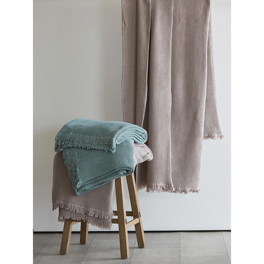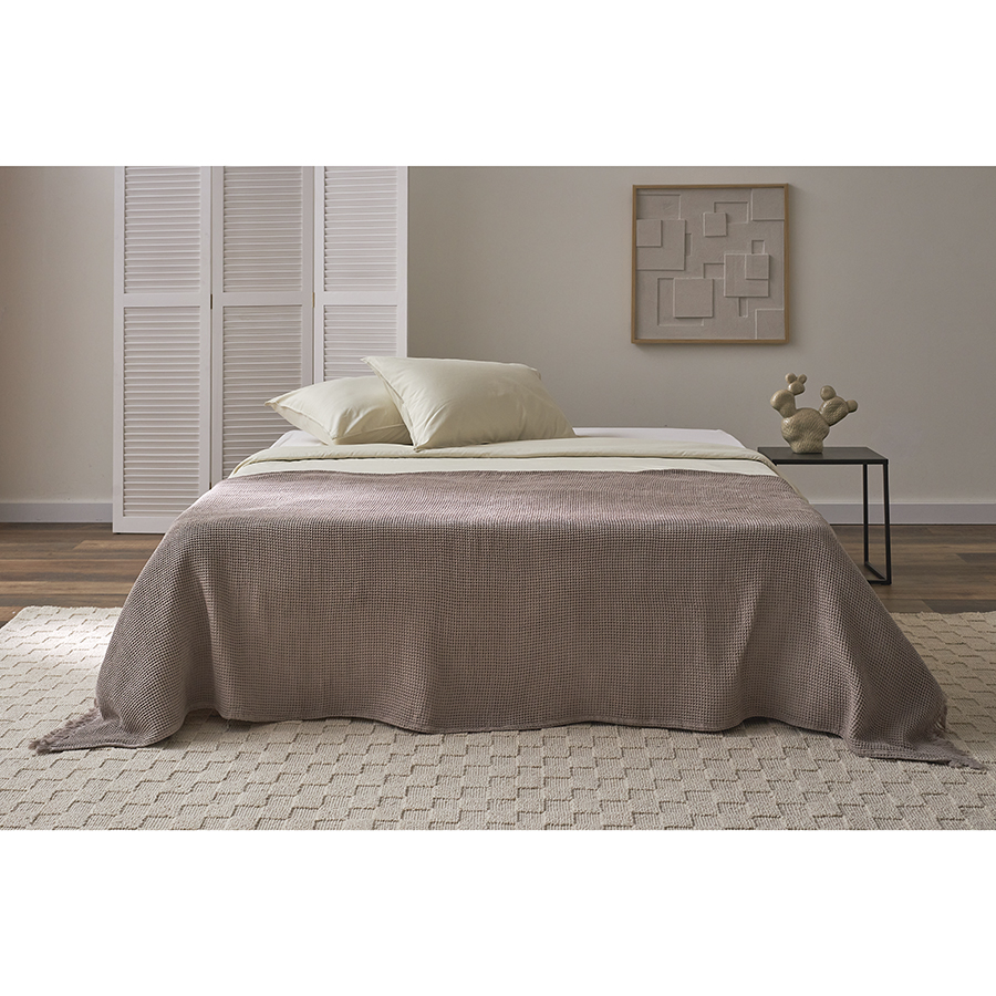 - Благодаря необычной “вафельной” фактуре покрывало выглядит стильно, при этом простое в уходе и практически не мнется.