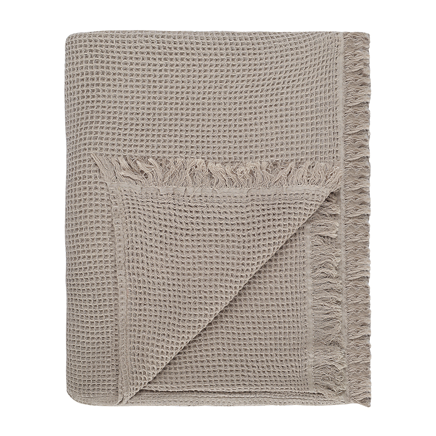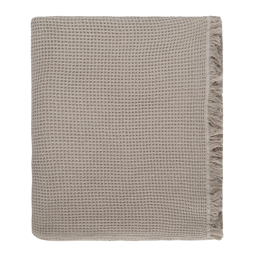 Покрывало вафельное из хлопка серо-бежевого цвета из коллекции Essential, 180х250 см, Tkano