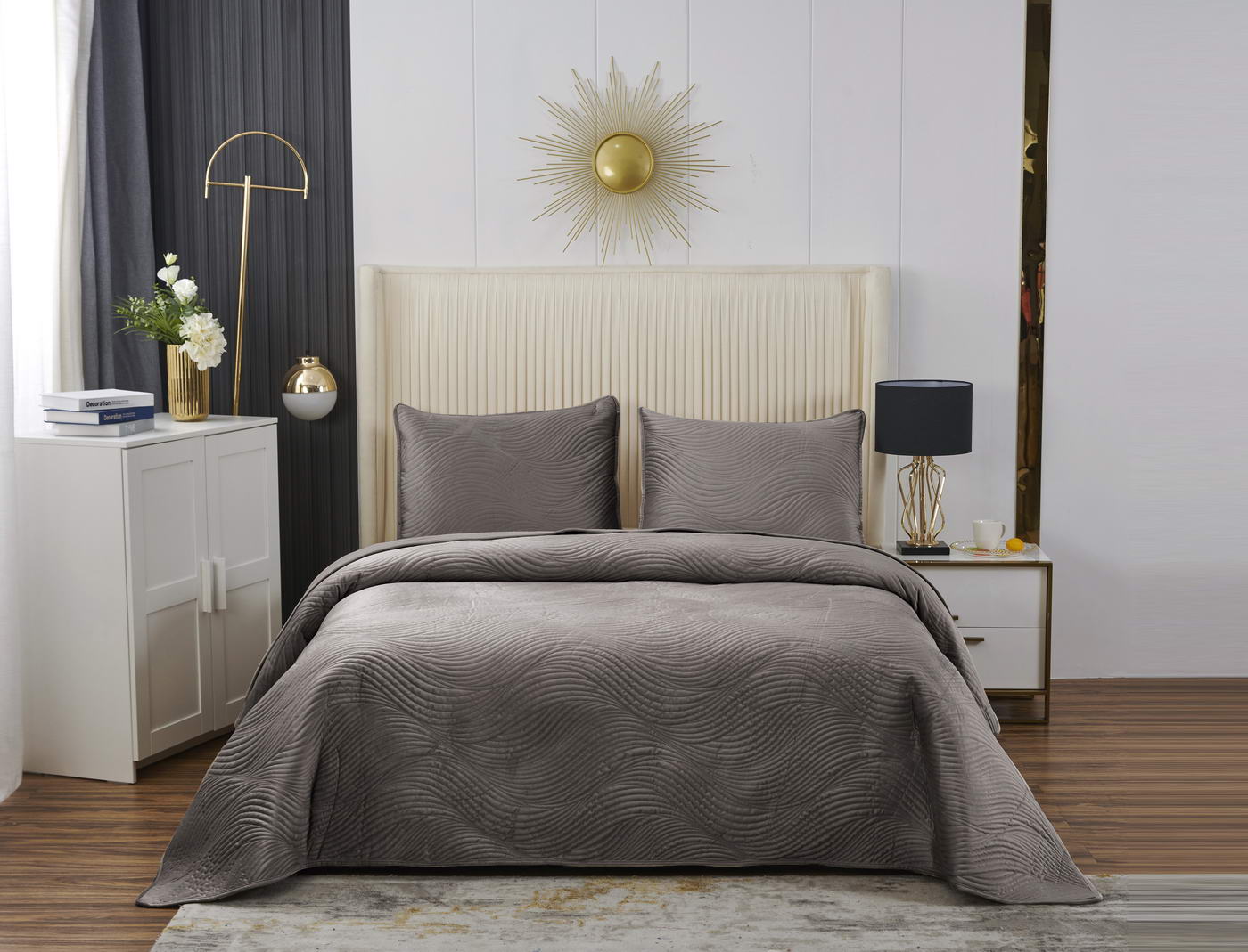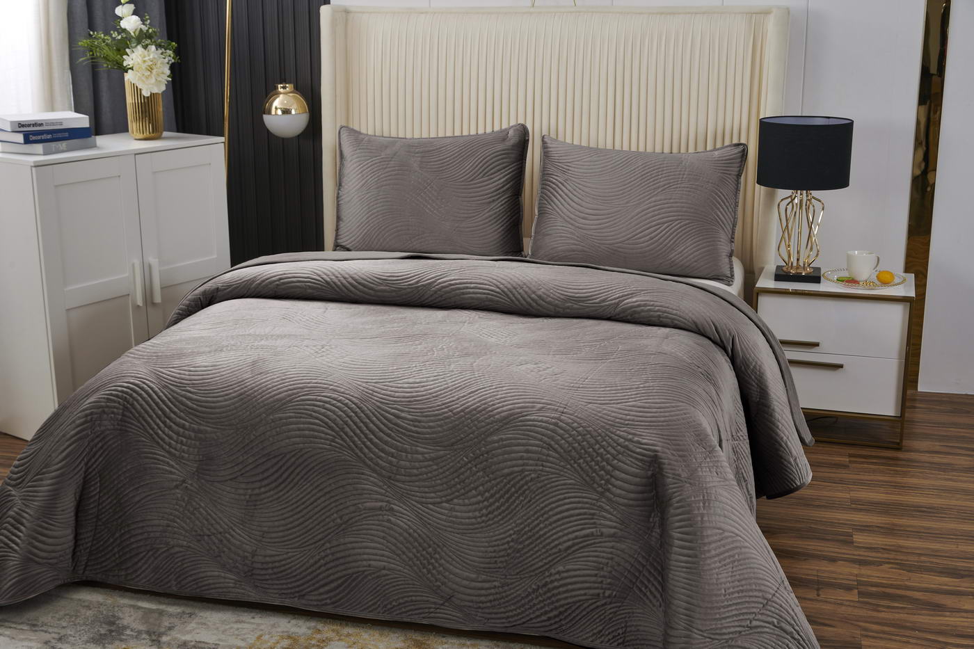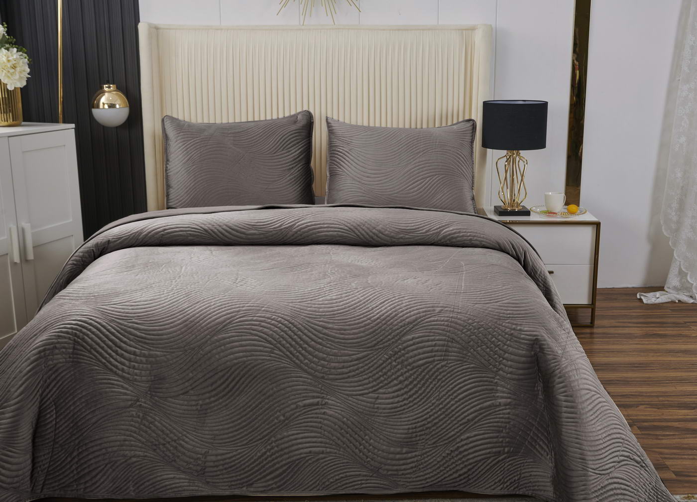 Велюровое покрывало Жизель.Комплектация:Покрывало: 240х260см (1 шт);Наволочки: 50х70 (2 шт);Состав : 100% вискоза;Плотность: 210 гр/ 100гр/ 75гр;Упаковка : текстильная сумка;Уход: Щадящая стирка 30 градусов.