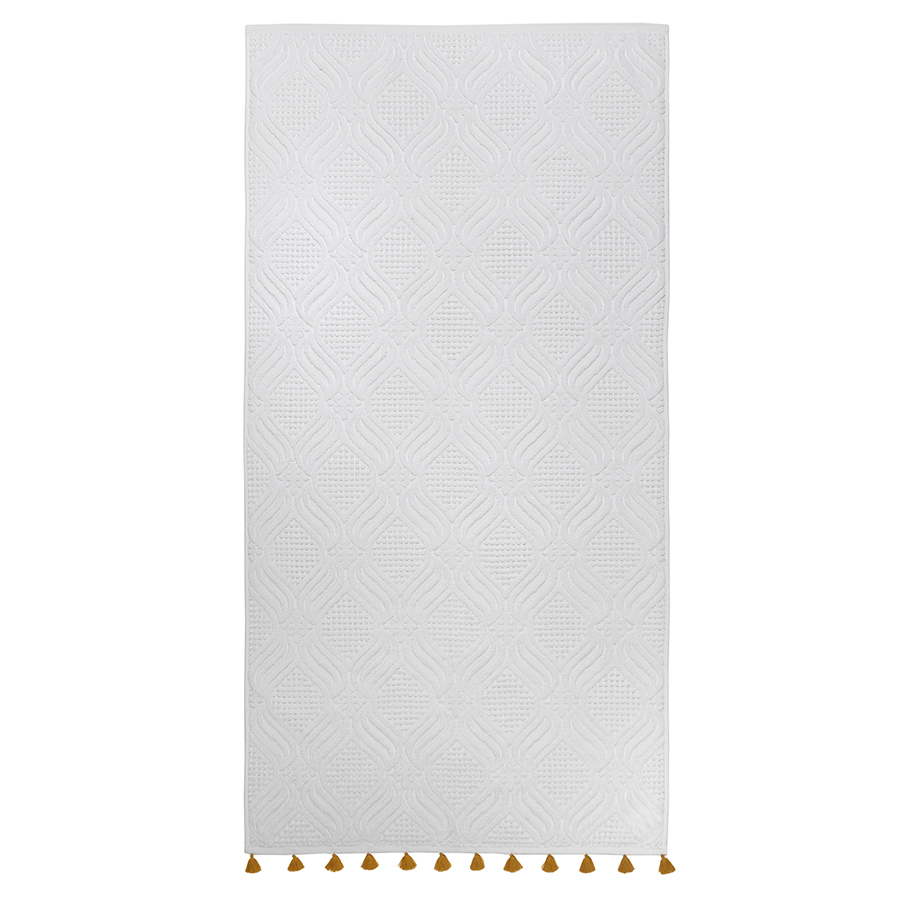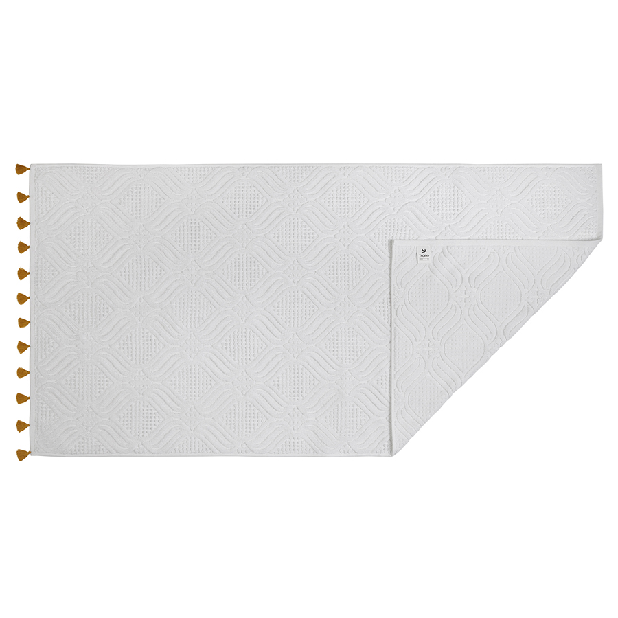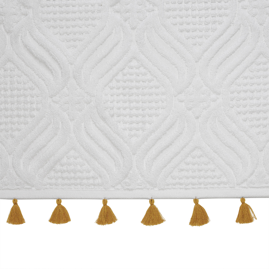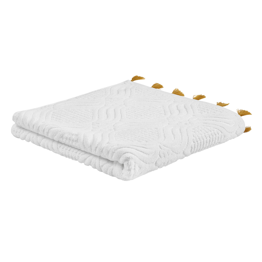 Полотенце банное белое, с кисточками цвета карри из коллекции Essential, 70х140 см, Tkano