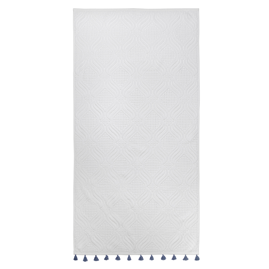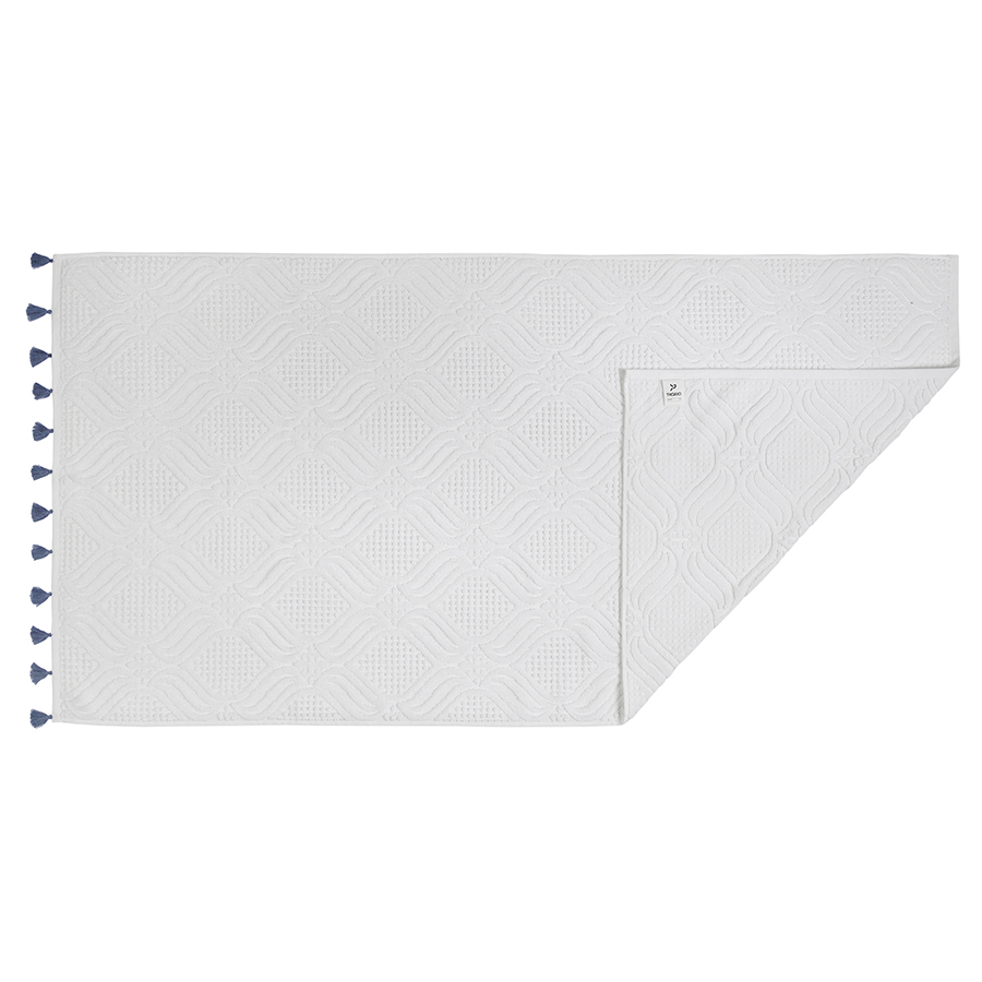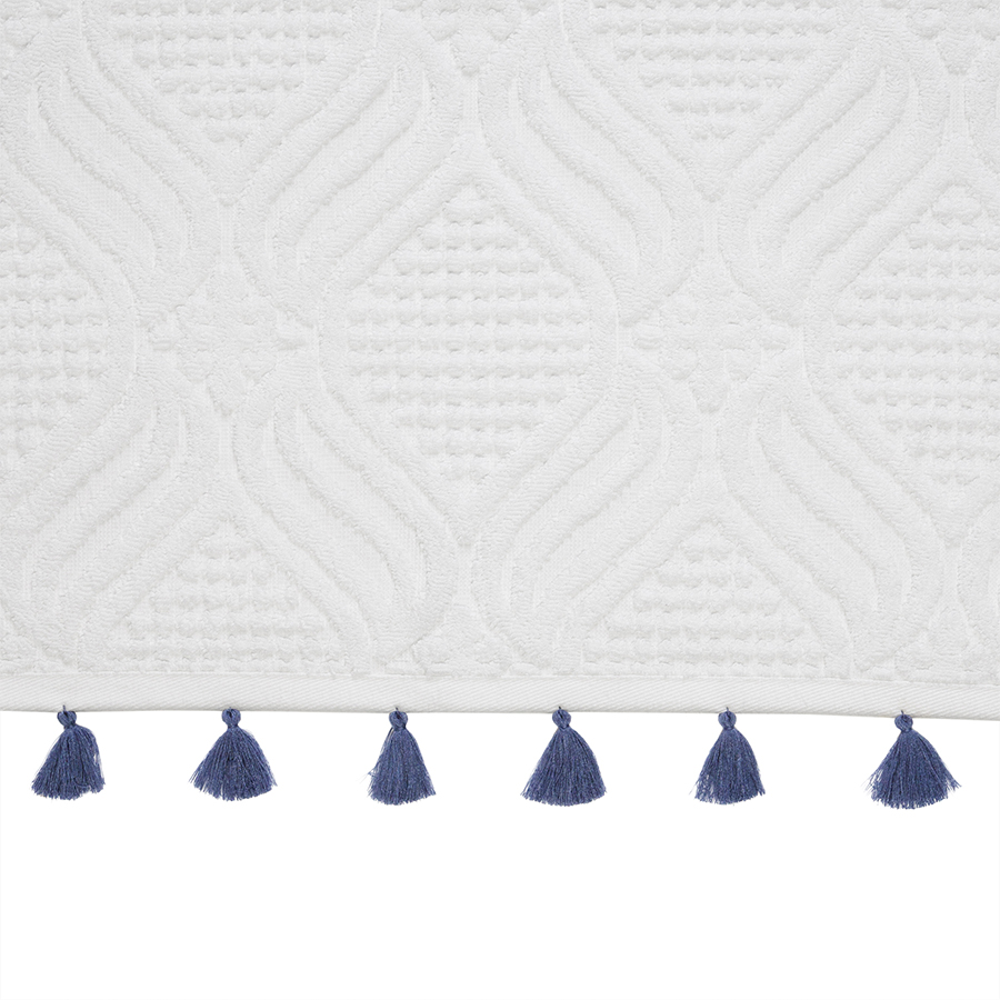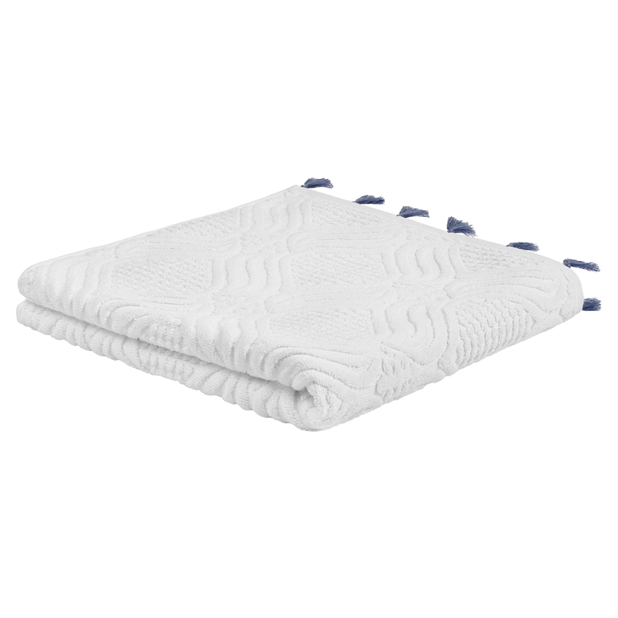 Полотенце банное белое, с кисточками темно-синего цвета из коллекции Essential, 70х140 см, Tkano