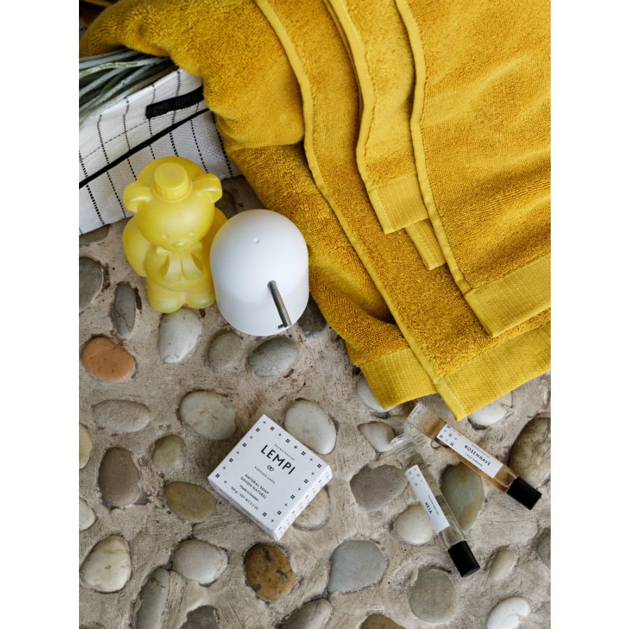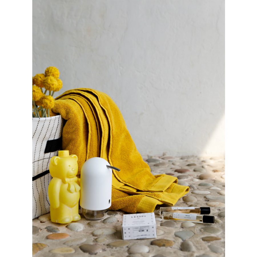 "Однотонное банное горчичное полотенце из коллекции Essential понравится тем, кто любит качественные и стильные банные принадлежности. Мягкая, при этом прочная пряжа изготавливается из лучших сортов длинноволокнистого хлопка методом тщательного прочесывания, что значительно улучшает ее качественные характеристики. Изделие быстро впитывает влагу, оставляя приятное ощущение свежести и чистоты. Полотенце отличается износостойкостью: хорошо держит форму и сохраняет впитывающие свойства на протяжении длительного времени.
