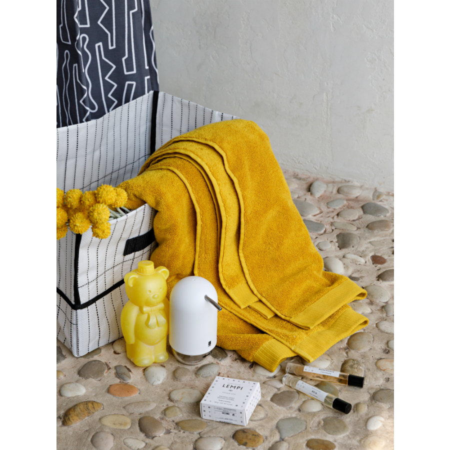 "Однотонное банное горчичное полотенце из коллекции Essential понравится тем, кто любит качественные и стильные банные принадлежности. Мягкая, при этом прочная пряжа изготавливается из лучших сортов длинноволокнистого хлопка методом тщательного прочесывания, что значительно улучшает ее качественные характеристики. Изделие быстро впитывает влагу, оставляя приятное ощущение свежести и чистоты. Полотенце отличается износостойкостью: хорошо держит форму и сохраняет впитывающие свойства на протяжении длительного времени.