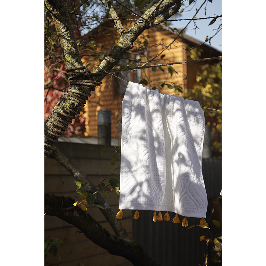 Полотенце для рук белое, с кисточками цвета карри из коллекции Essential, 50х90 см, Tkano