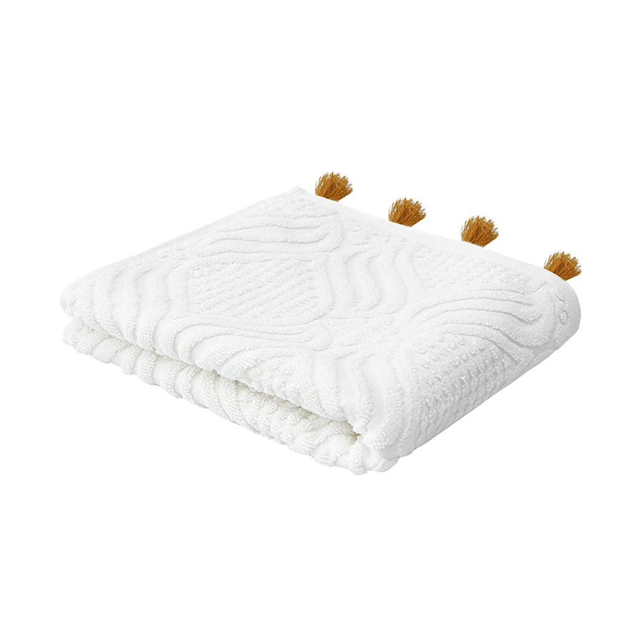 "Полотенце для рук из коллекции Essential – качественный текстиль из экологичного хлопка, который идеально подойдет для ежедневного использования и украсит вашу ванную комнату. Мягкая, приятная на ощупь ткань превосходно впитывает влагу и дарит комфорт при контакте с кожей. Материал абсолютно гипоаллергенен, так как не содержит синтетических волокон, при этом обладает высокими показателями прочности и износостойкости. Дизайн полотенца вдохновлен этническими мотивами, что подчеркивают декоративные элементы в виде кисточек контрастного оттенка.