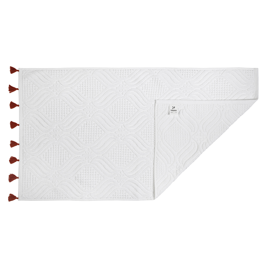 "Полотенце для рук из коллекции Essential – качественный текстиль из экологичного хлопка, который идеально подойдет для ежедневного использования и украсит вашу ванную комнату. Мягкая, приятная на ощупь ткань превосходно впитывает влагу и дарит комфорт при контакте с кожей. Материал абсолютно гипоаллергенен, так как не содержит синтетических волокон, при этом обладает высокими показателями прочности и износостойкости. Дизайн полотенца вдохновлен этническими мотивами, что подчеркивают декоративные элементы в виде кисточек контрастного оттенка.