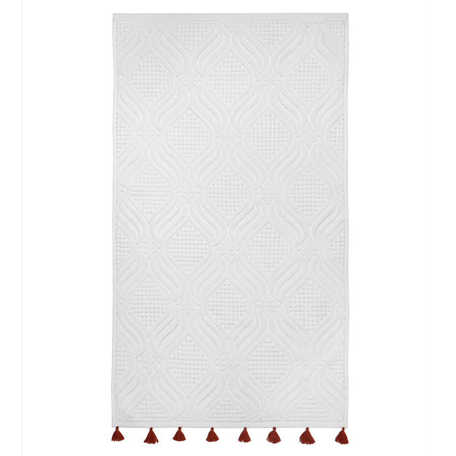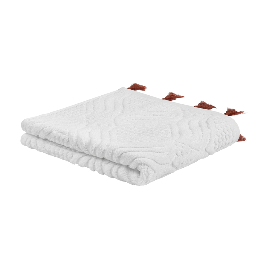 Полотенце для рук белое, с кисточками цвета красной глины из коллекции Essential, 50х90 см, Tkano