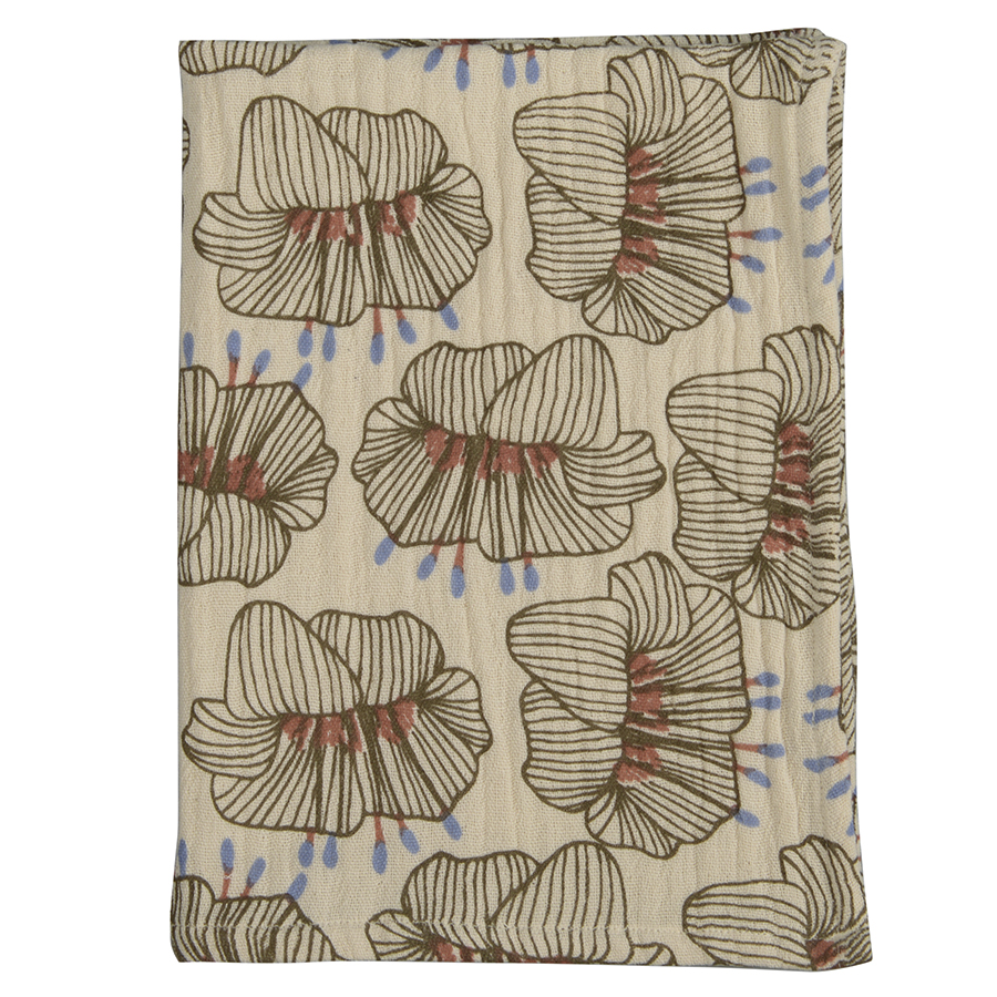 Полотенце кухонное из хлопкового муслина молочного цвета с принтом Цветы из коллекции Prairie, 50х70 см