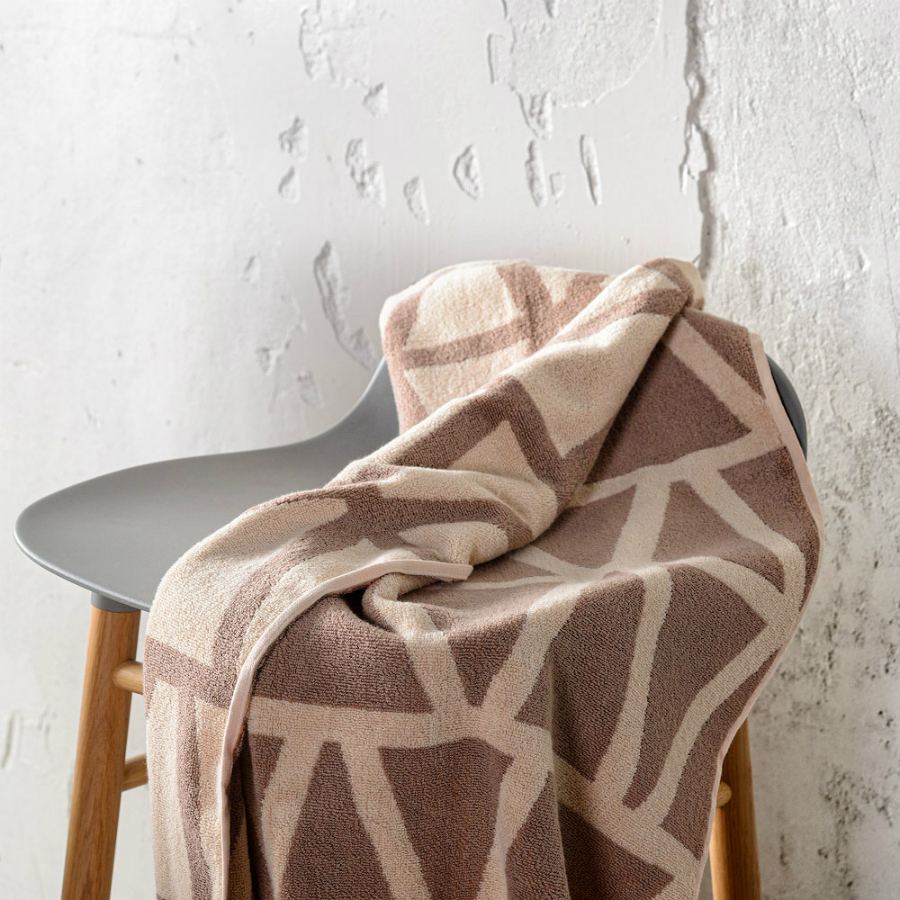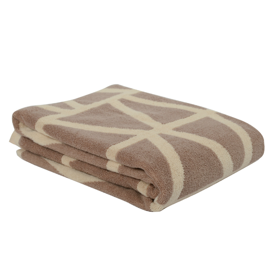 Полотенце жаккардовое банное с авторским дизайном Geometry, коричнево-бежевое Wild, 70х140 см
