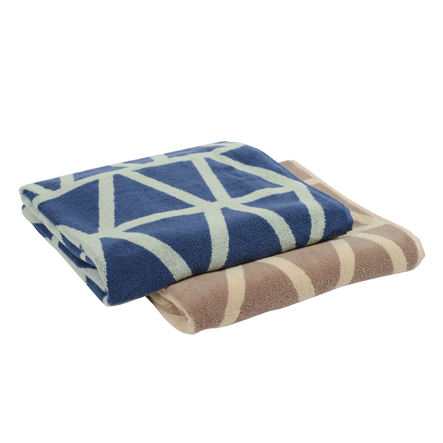 Полотенце жаккардовое банное с авторским дизайном Geometry серо-синее Wild, 70х140 см