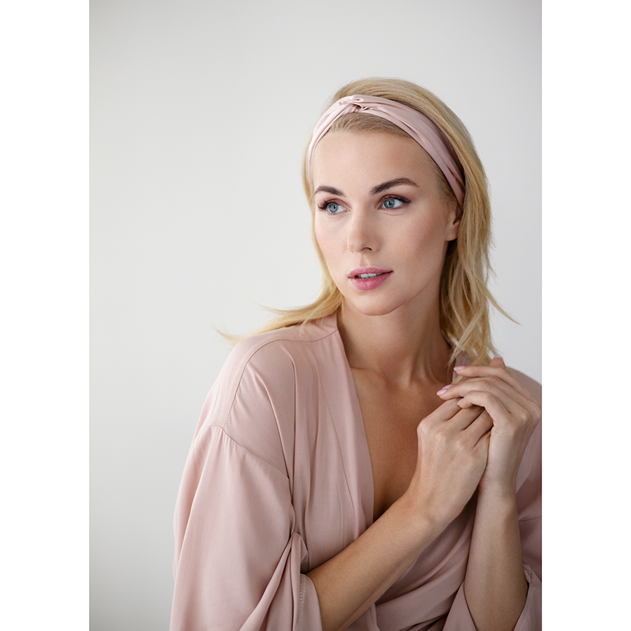 "Повязка из натурального шелка цвета пыльной розы из коллекции Essential великолепно дополнит линейку любимых аксессуаров, придаст образу элегантность, а волосам – ухоженный вид. Вы можете надевать ее во время отдыха, сна или проведения косметических процедур.