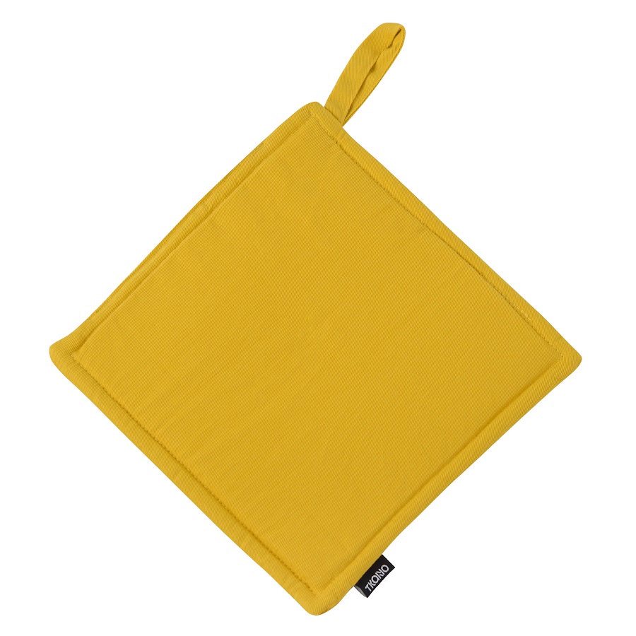 "Прихватка из хлопка горчичного цвета из коллекции Prairie – универсальный кухонный аксессуар. Однотонное изделие органично впишется в любой современный интерьер. Не нагревается даже при длительном контакте с горячими поверхностями. Внешняя часть выполнена из 100%, гипоаллергенного хлопка. Наполнитель: полиэстер. Есть удобная петелька для подвешивания. Плотность ткани - 215GSM.