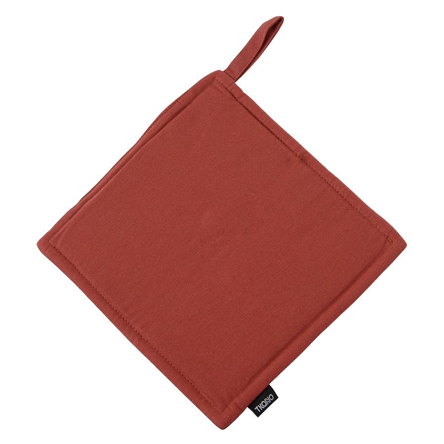 "Прихватка из хлопка терракотового цвета из коллекции Prairie – универсальный кухонный аксессуар. Однотонное изделие органично впишется в любой современный интерьер. Не нагревается даже при длительном контакте с горячими поверхностями. Внешняя часть выполнена из 100%, гипоаллергенного хлопка. Наполнитель: полиэстер. Есть удобная петелька для подвешивания. Плотность ткани - 215GSM.