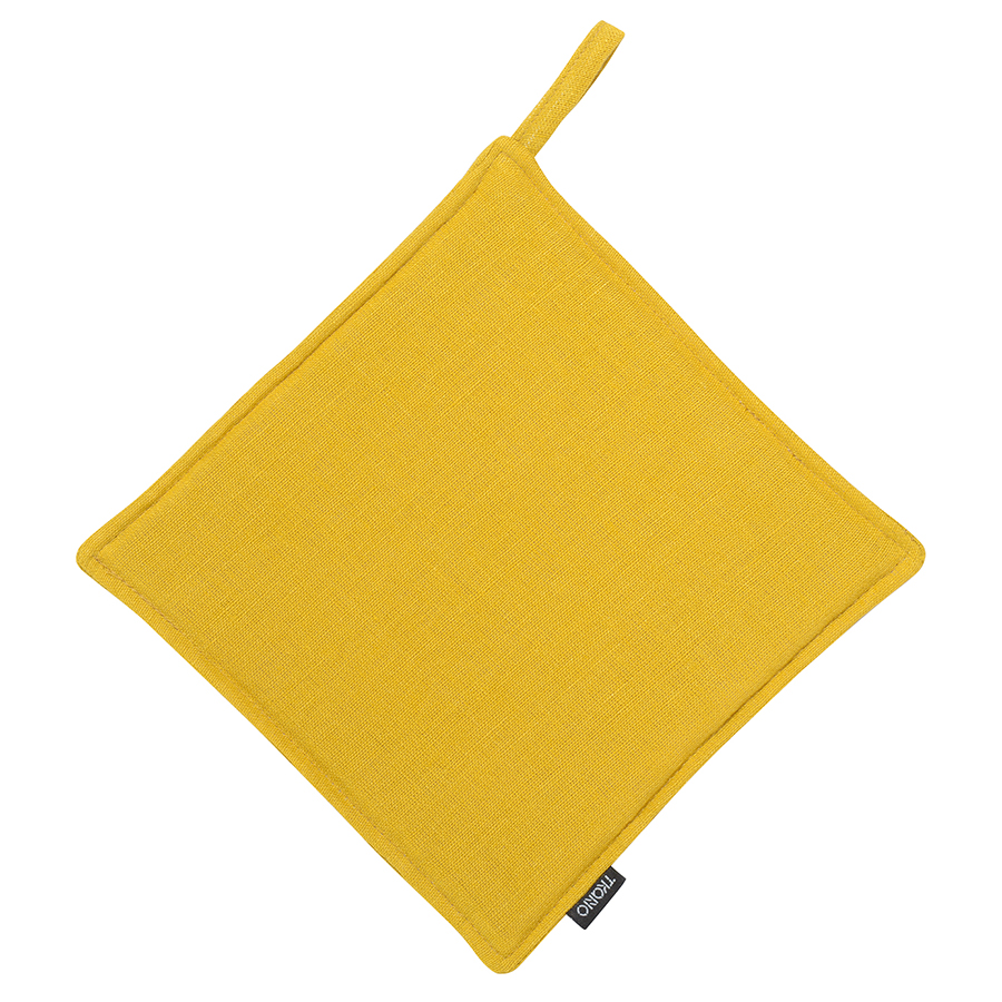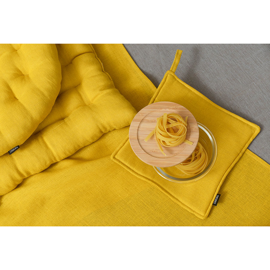 Прихватка из стираного льна горчичного цвета из коллекции Essential, 22х22 см