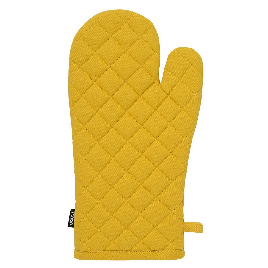 "Прихватка-варежка из хлопка горчичного цвета из коллекции Prairie – универсальный кухонный аксессуар. Изделие органично впишется в любой современный интерьер. Не нагревается даже при длительном контакте с горячими поверхностями. Внешняя и внутренняя части выполнены из 100%, гипоаллергенного хлопка. Наполнитель: полиэстер. Есть удобная петелька для подвешивания. Плотность ткани - 215GSM.