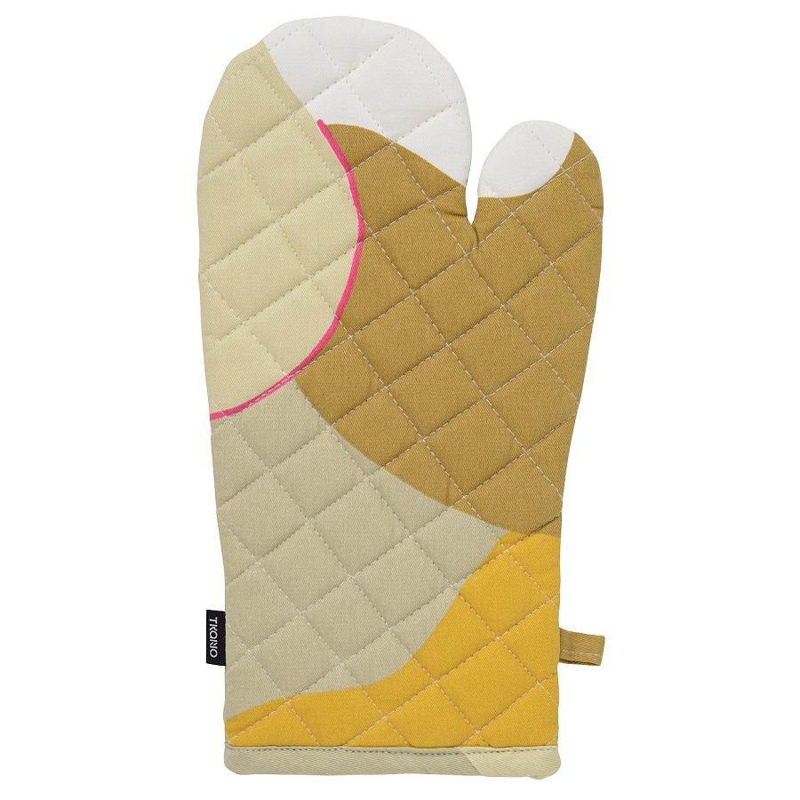 "Прихватка-варежка из хлопка горчичного цвета с авторским принтом из коллекции Freak Fruit– универсальный кухонный аксессуар. Абстрактный принт не имеет повторяющегося раппорта и представляет собой единую законченную картину.