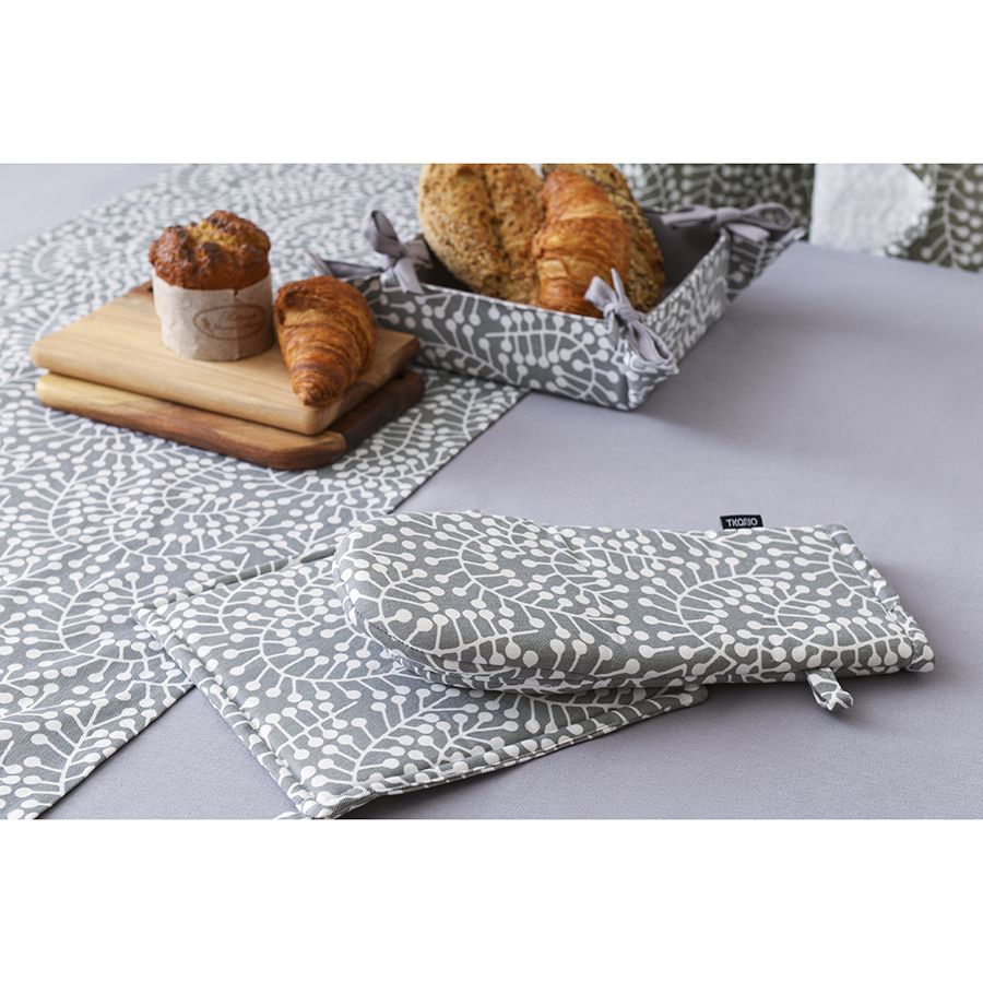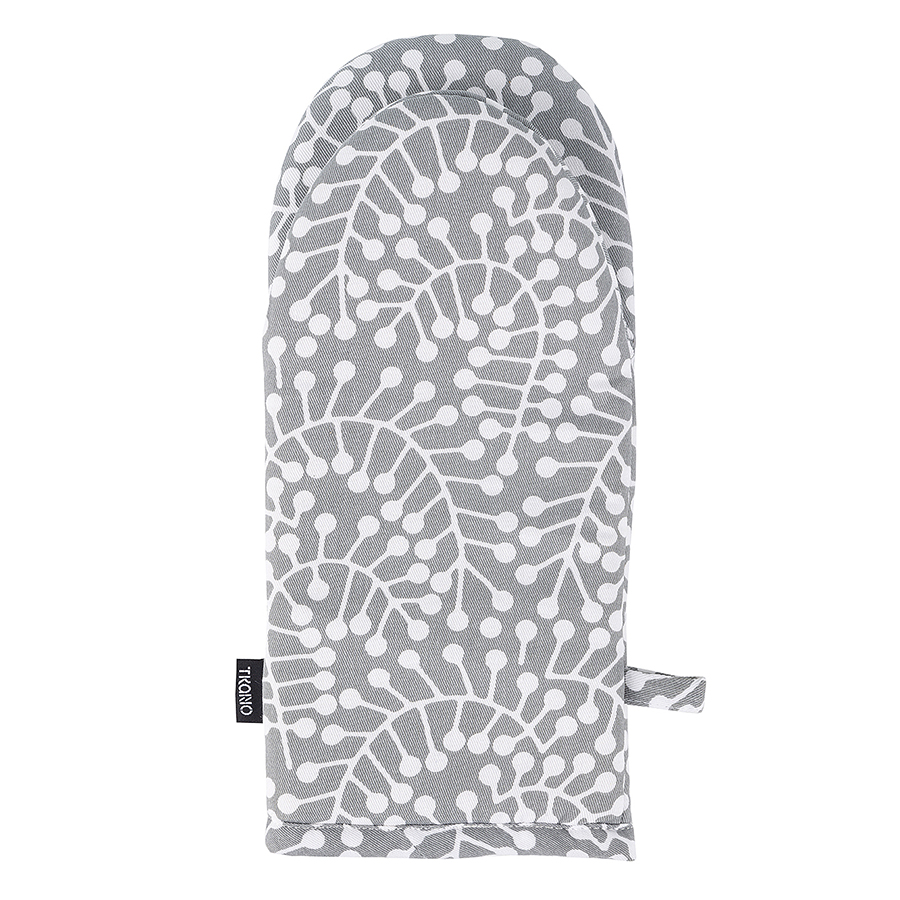 Прихватка-варежка серого цвета с принтом Спелая Смородина из коллекции Scandinavian touch, 14х32 см
