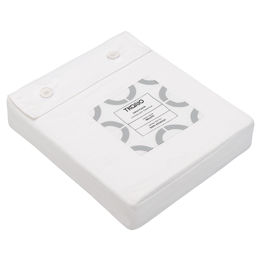 "Простыня из сатина белого цвета из коллекции Essential – отличный вариант для тех, кто любит классическое постельное белье. Хлопковый сатин плотностью 210 ТС приятен на ощупь и обладает естественным блеском. Он не теряет внешний вид даже после множества стирок, не деформируется и не линяет, на нем не образуются катышки.
