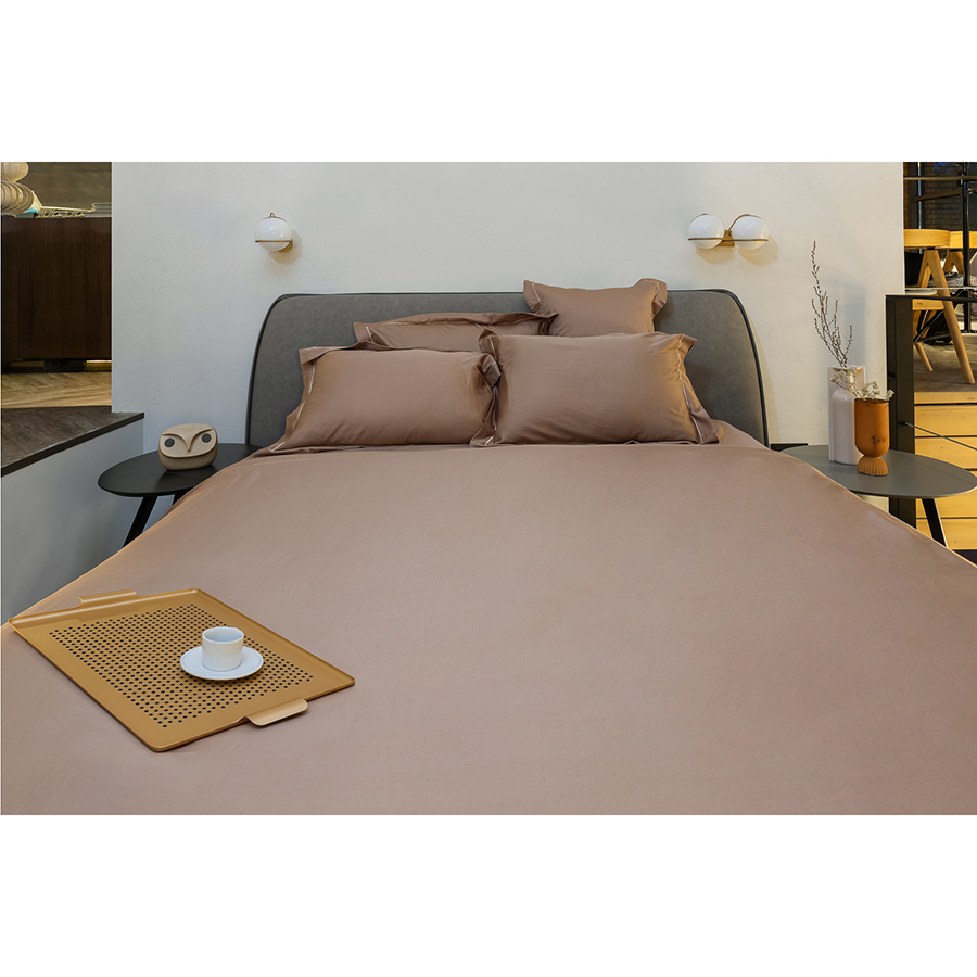 "Сатиновая простыня плотностью в 300ТС в базовом бежевом оттенке сделана из 100%, египетского хлопка. Модель из основной коллекции Essential идеально подходит для сочетания с бельем из других коллекций.