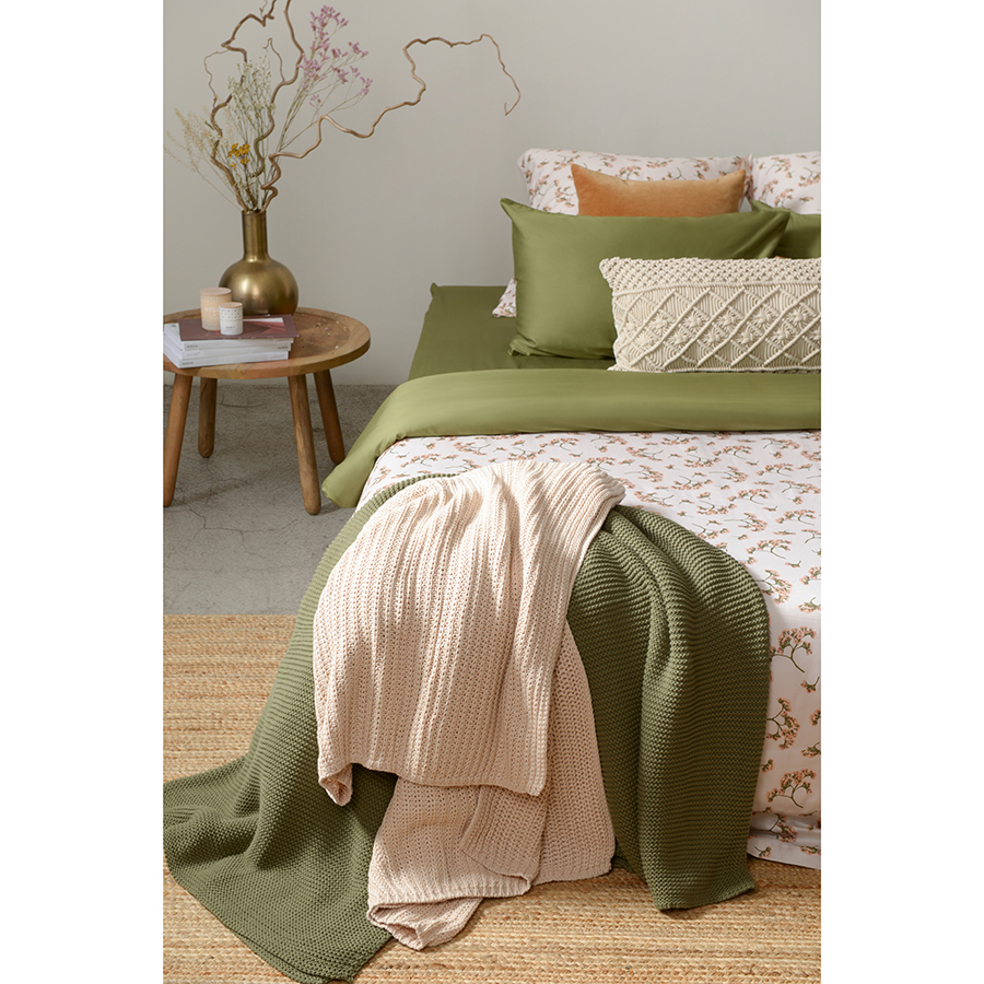 Простыня из сатина оливкового цвета из коллекции Wild, 180х270 см