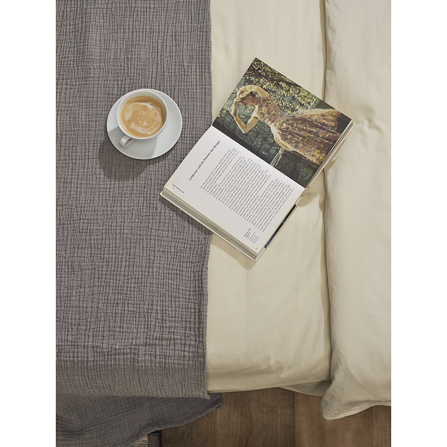 Простыня из сатина серо-бежевого цвета с брашинг-эффектом из коллекции Essential, 240х270 см, Tkano